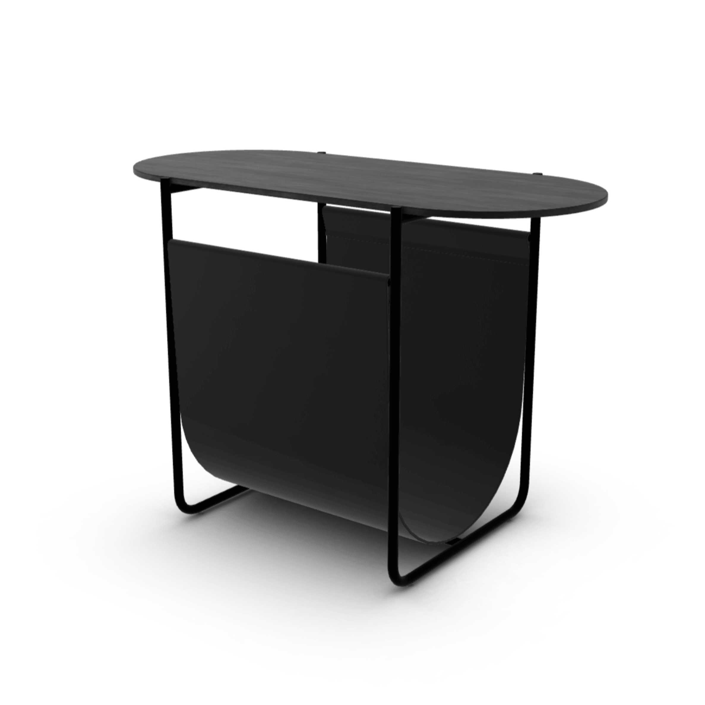 Side table It was made of metal pipes with a wooden top. An elegantly tailored metal frame, oval top and magazine pocket provide a sophisticated stylization that whispers rather than scream.