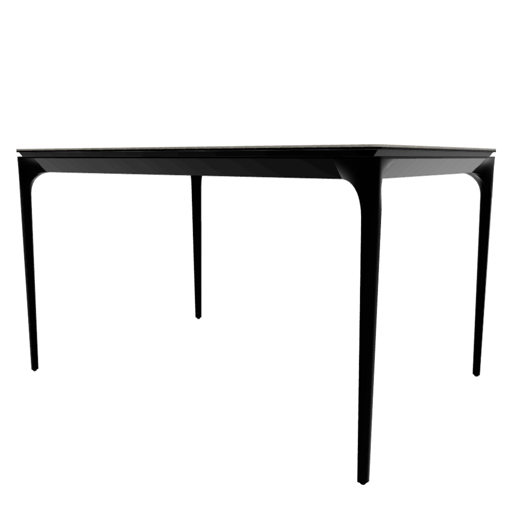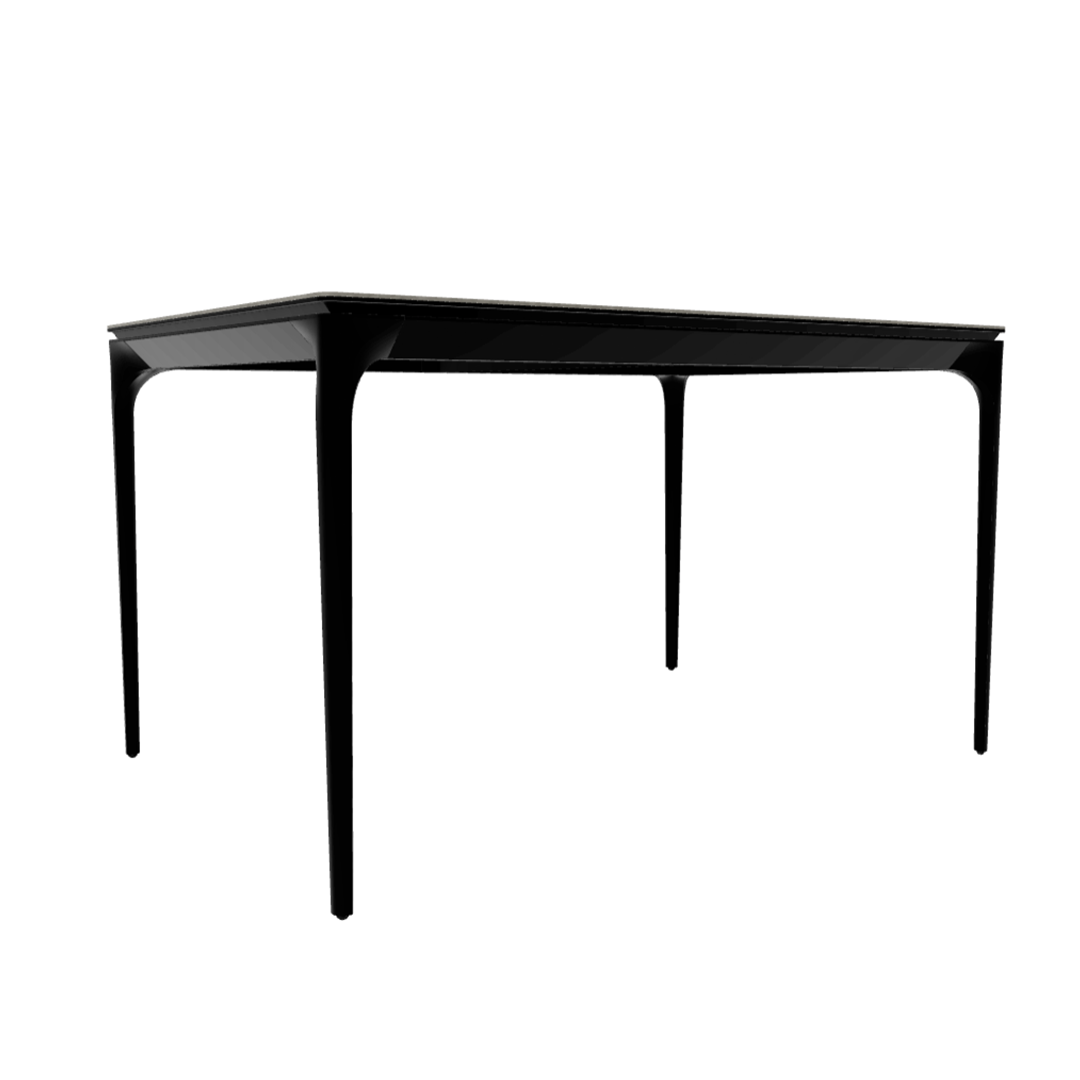 Silhouette to fold -out table with a sophisticated minimalist design, with slightly rounded edges and a slim frame made of varnished aluminum in black. The countertop is available in both wooden and ceramic versions, including in a matt white finish.