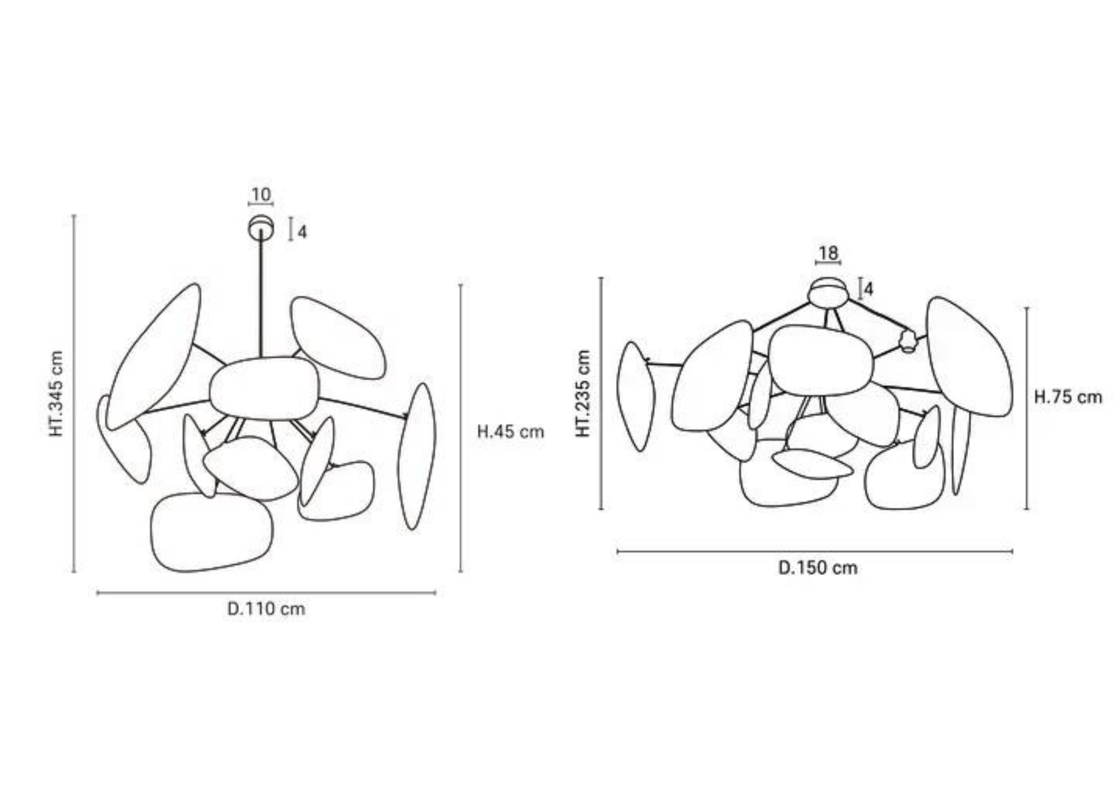 These 10 or 13 screens with linen fabric give the lamp an unusual look, spreading light in a subtle and pleasant way. In addition, textile links and a metal roof with the possibility of adapting to the DCL system facilitate the installation and adjustment of the lamp as needed.