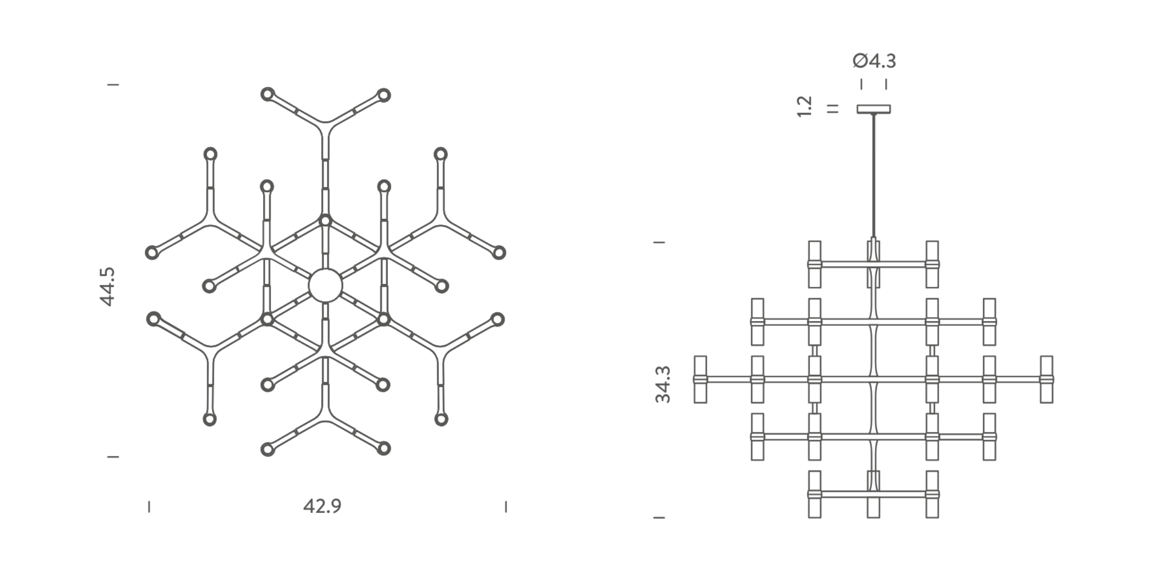 The icon of modern design referring to ancient chandeliers. Chandelier Crown Major, inspired by the shape of snowflakes, is characterized by a versatile design with a strong visual attractiveness, reinforced with a modular structure. Chandelier Crown Major can give any room the elegance and size that the room and its decor deserve.