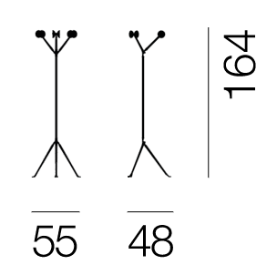 Floor coat rack designed by Ronan & Erwan Bouroullec is an elegant and functional solution for storing outerwear. Made from metal and wood, it combines a sturdy construction with a refined aesthetic. Three parallel steel tubes connected at the top and bottom create a stable, triangular base. Each tube features protrusions that allow for hanging clothes, and the ends of the hooks are turned to prevent garments from slipping off.