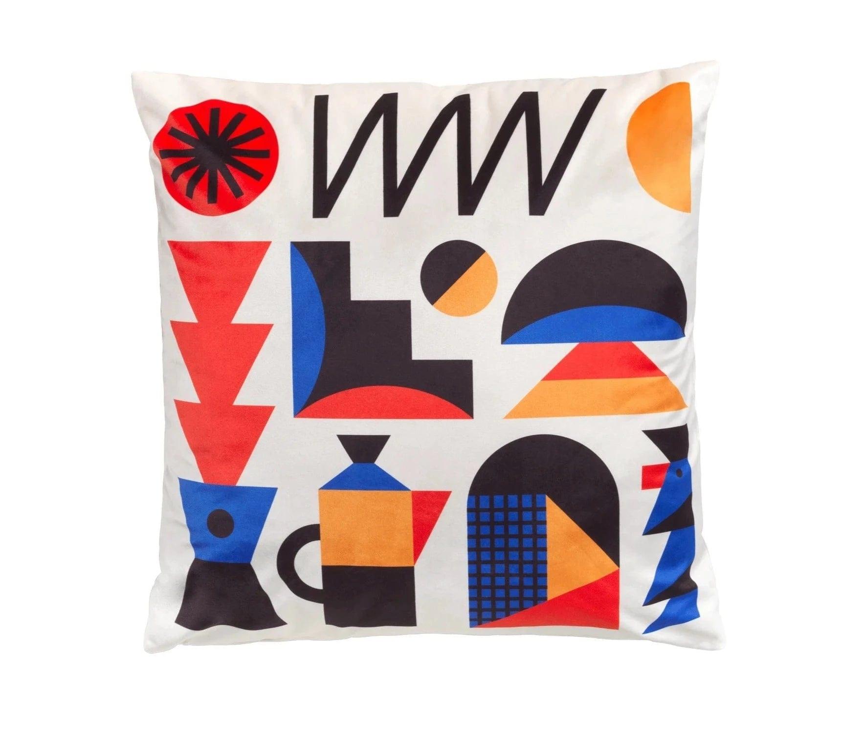 Pillow Mr. Mouse In red, it is an unusual element that will give your interior character and introduce a bit of freshness to it. Geometric shapes, bold colors, as well as interesting forms that, in combination, create a coherent face reminiscent, is a project by Marco Oggiana. Eye -catching funny elements will add colors to your living room or bedroom.