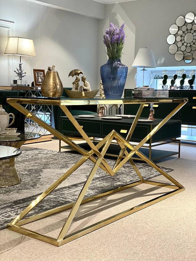 Golden console Connor is not only a designer table, it is a clear declaration of style and sophistication. Its presence in space introduces modernity and elegance, while remaining functional and versatile. It is a piece of furniture that will not only decorate your interior, but also give it a unique character and splendor.