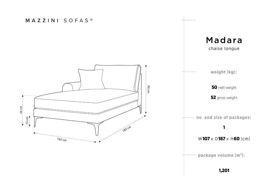 Chaise Madara is the quintessence of modern minimalism. A deep seat in combination with comfortable cushions on the back and handy armrests is a guarantee of extraordinary comfort of use. The velvet finish is not only pleasant to the touch, but also resistant to abrasion, which minimizes the risk of damage.