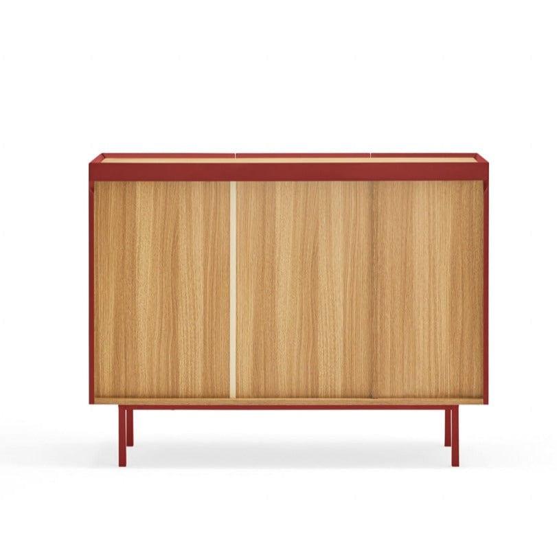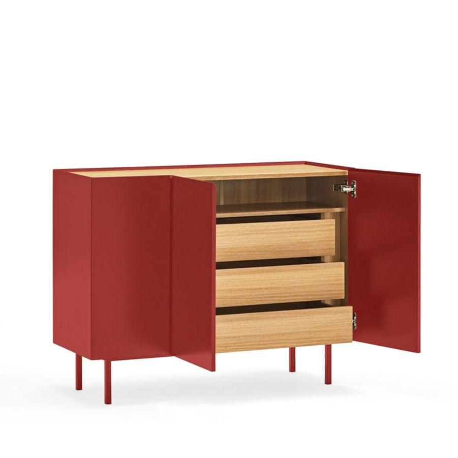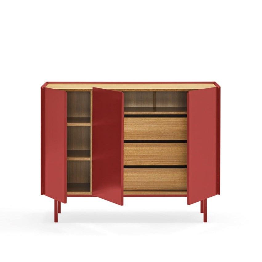 References to nature and a simple arrangement make it difficult to take your eyes off red cabinet Arista. The intelligent use of shelves in various sizes allows for effective space development. A precise finish is one of the biggest advantages of the Arista collection.