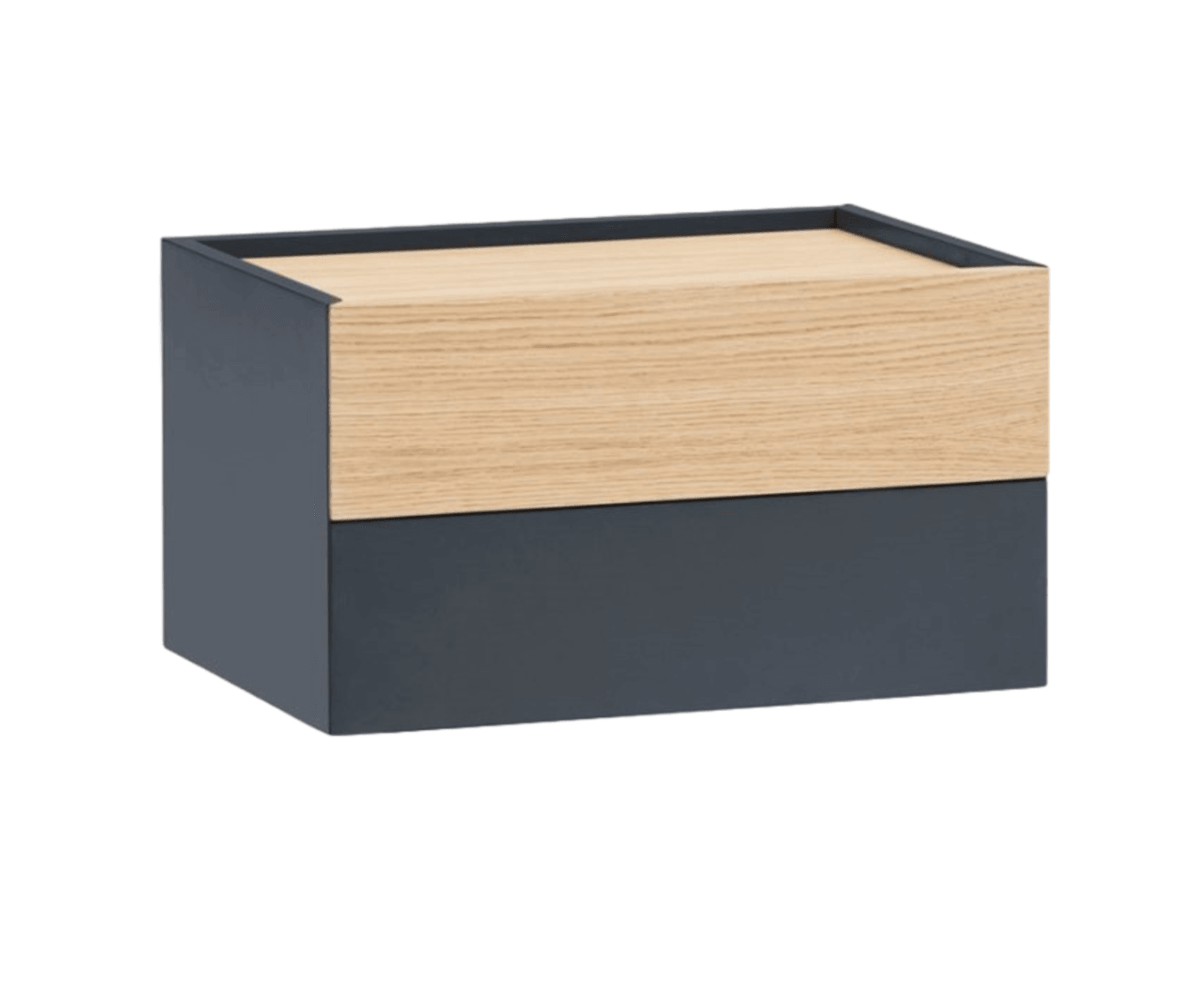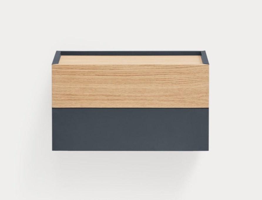 Hanging bedside table Otto in anthracite color is distinguished by a modern style with clean lines, where the color harmoniously combines with the accents of natural veneer, which allows it to match it to various spaces. You can hang it on the wall, which makes it impressed that it levies, which adds an unusual visual effect.