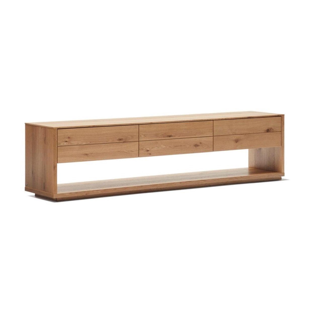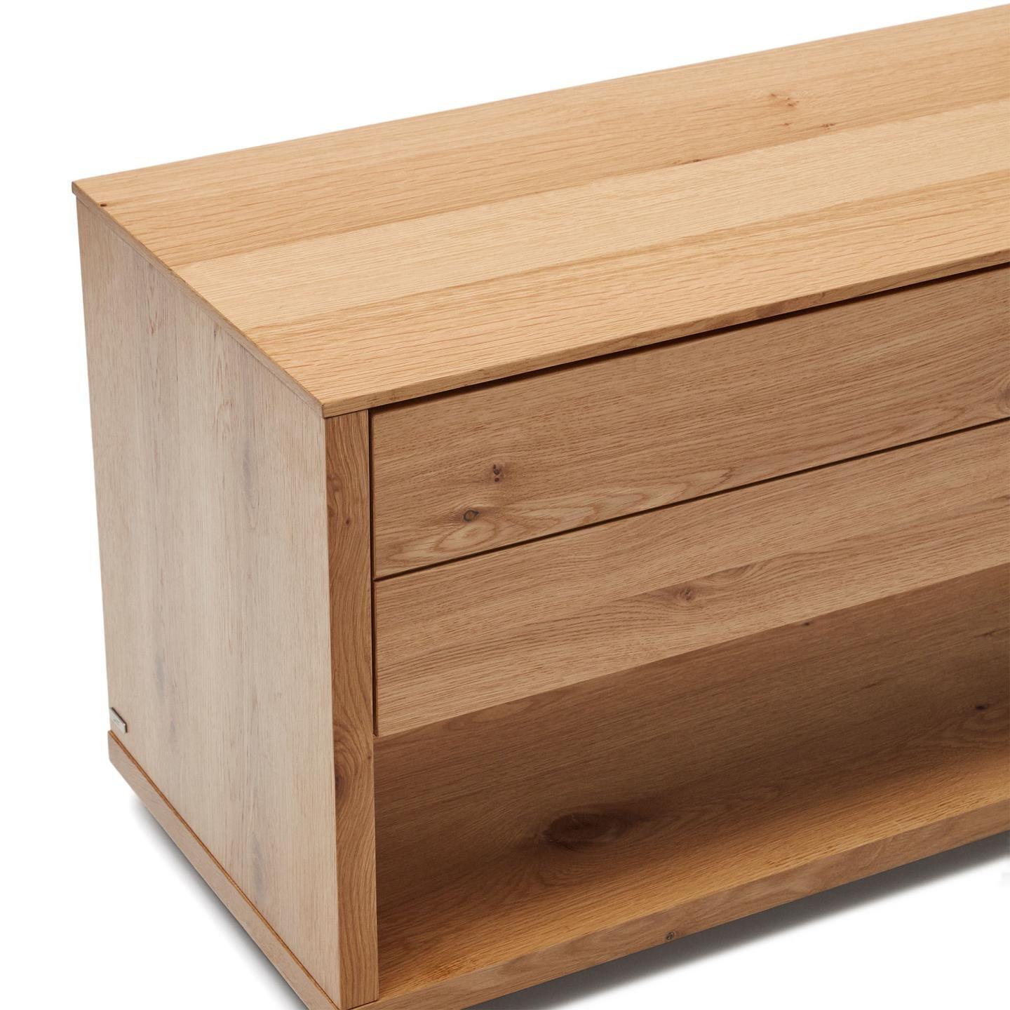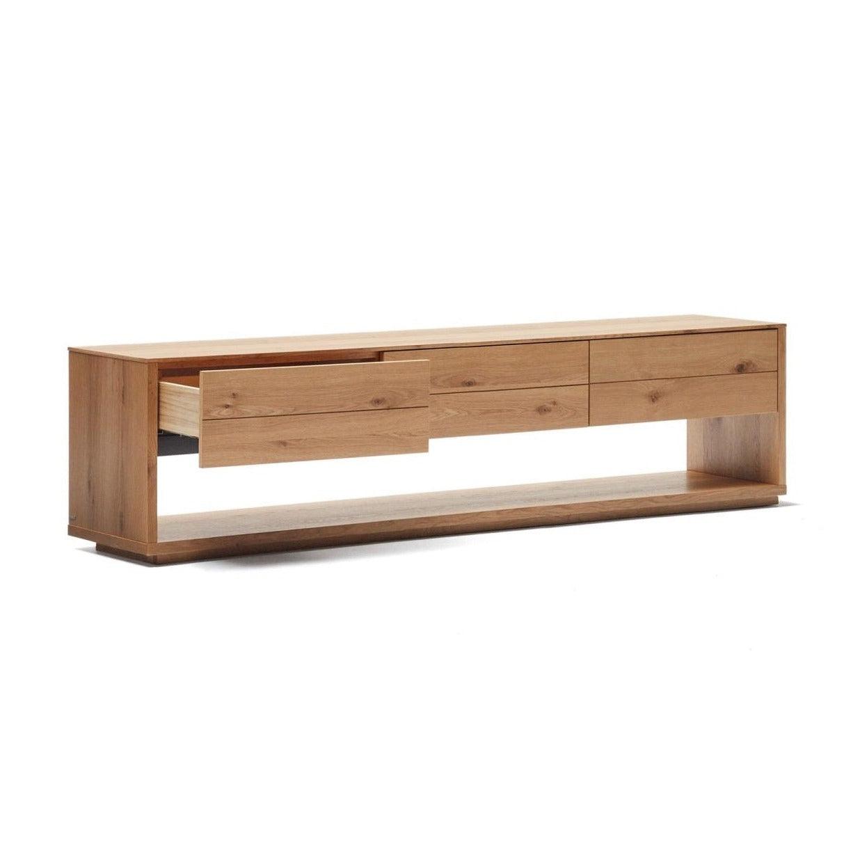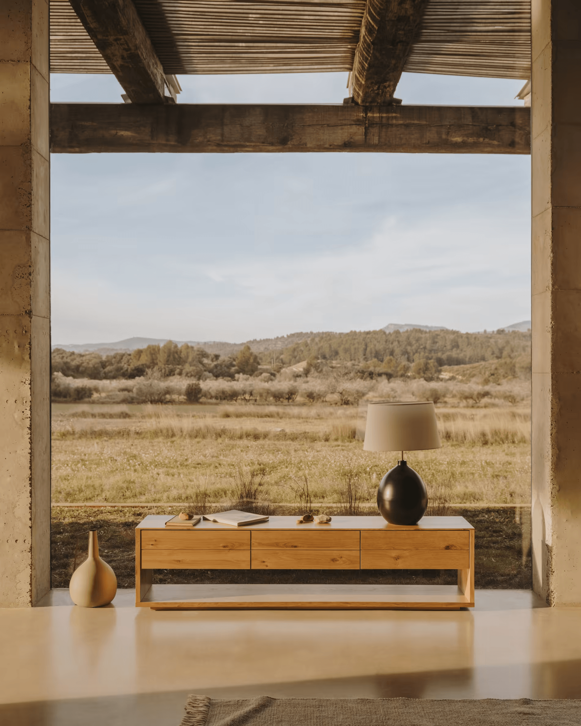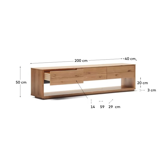 RTV cabinet Alguema, created by the renowned Kave Home project team, is a unique proposition for those who are looking for peace and relaxation in their interiors. A combination of a minimalist style with sophisticated oak veneer with a natural finish makes this collection not only functional, but also aesthetically delightful.
