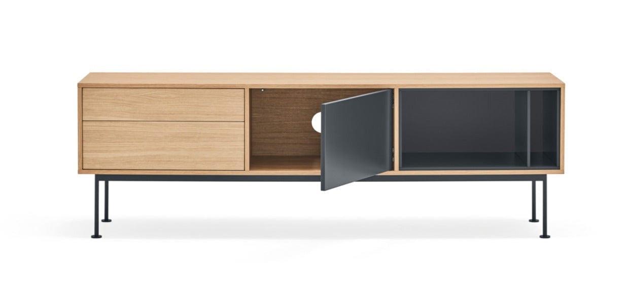 Precise performance and a great sense of proportion by Designers of the Spanish brand Teulat made you enjoy this work of applied art straight from your salon. Wooden connection with a deep shade of gray added RTV cabinet proverbial claw.