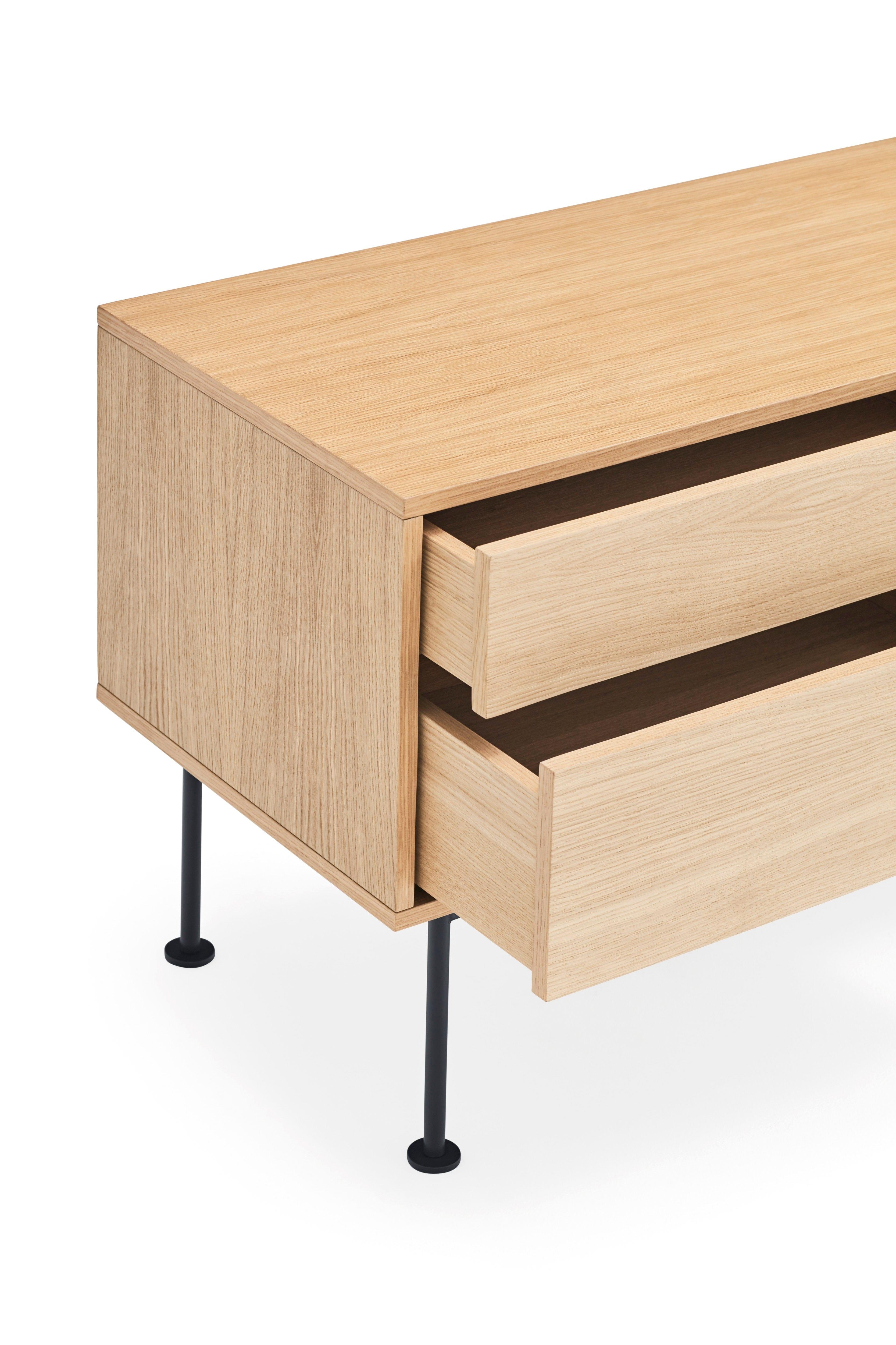 Perfectly preserved form and classic construction sZafki RTV Yoko make it a timeless project. Additionally Cabinet RTV standing The YOKO collection was made of high quality materials such as oak veneer and stainless steel.