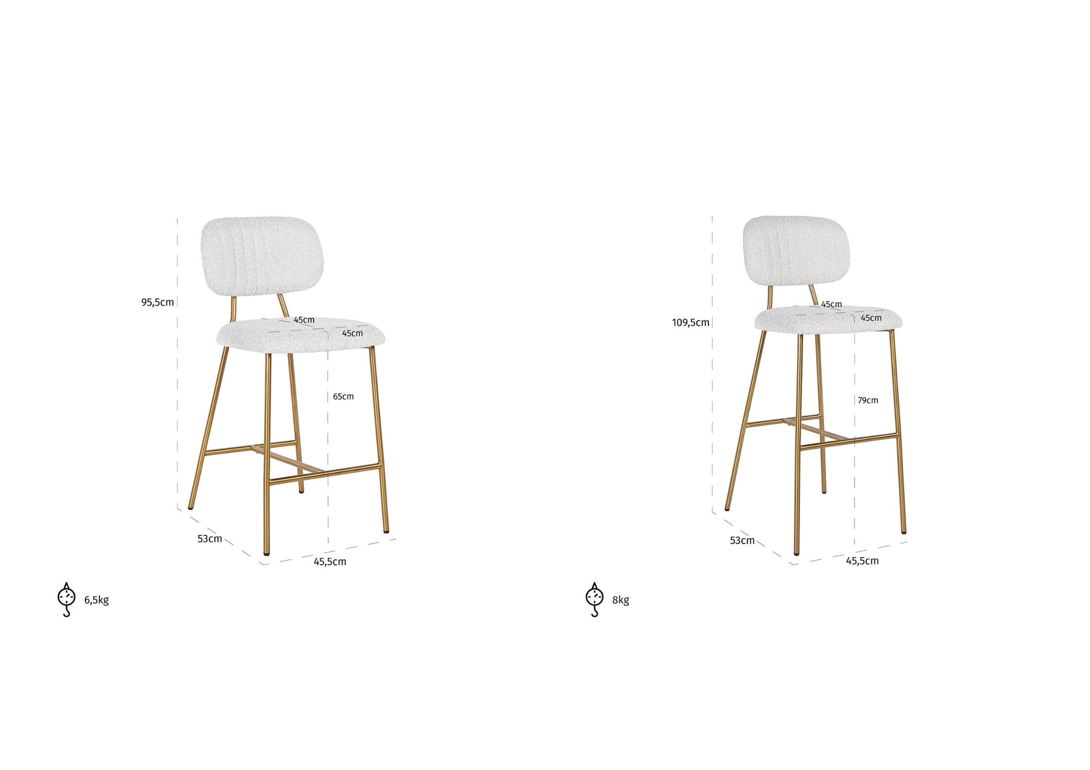 Bar Xenia is a unique piece of furniture that will attract the attention of all glamor lovers. Its characteristic support, decorated with clear stitching, and seat upholstery made of elegant Bouclé fabric in a shade of white give it an unusual charm.