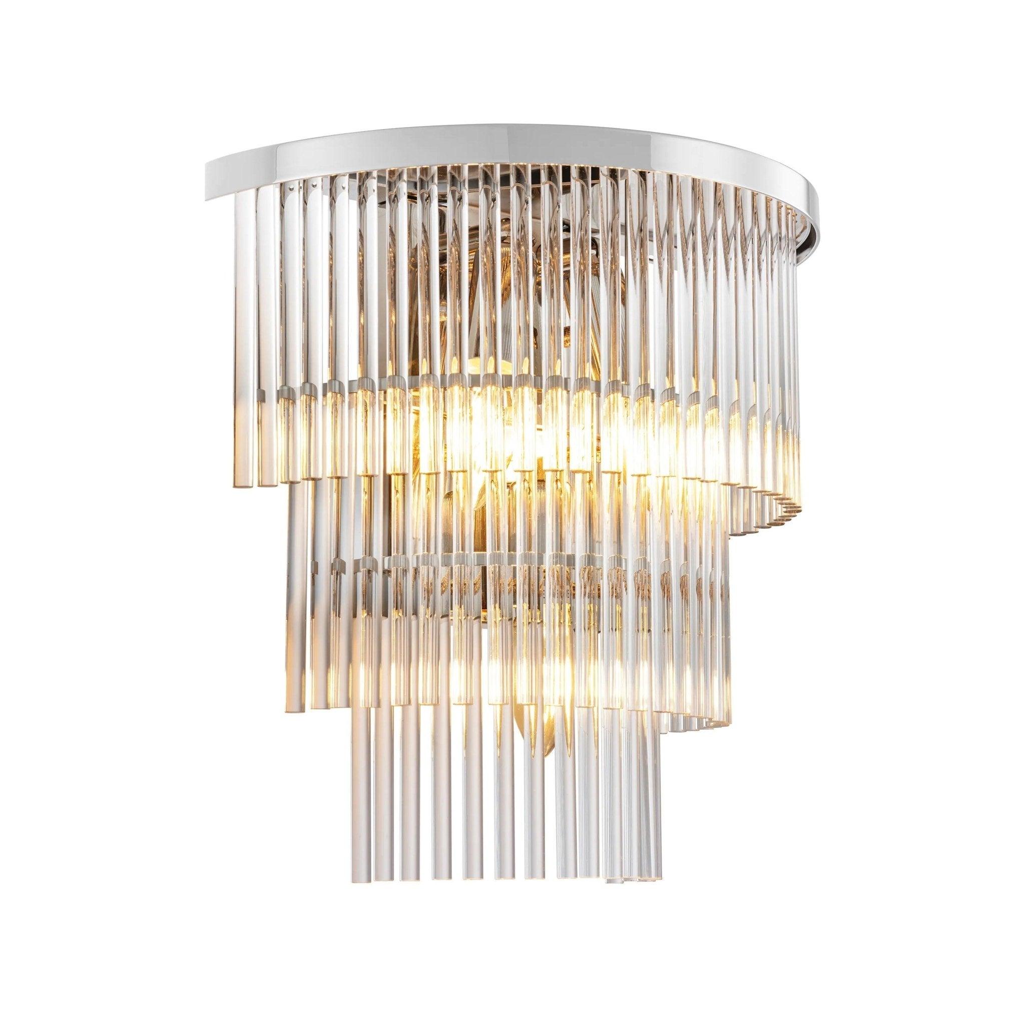Three levels of transparent glass rods are the heart of this lamps. When the lamp is illuminated, the glass exudes captivating lighting that creates a fascinating effect. It is like you moved to the years of crazy dances and jazz. The silver finish of the lamp adds its character and elegance. This reflects the aesthetics of the era when the design was as important as convenience. East to silver lamp, which connects the past with the present, creating a harmonious design.