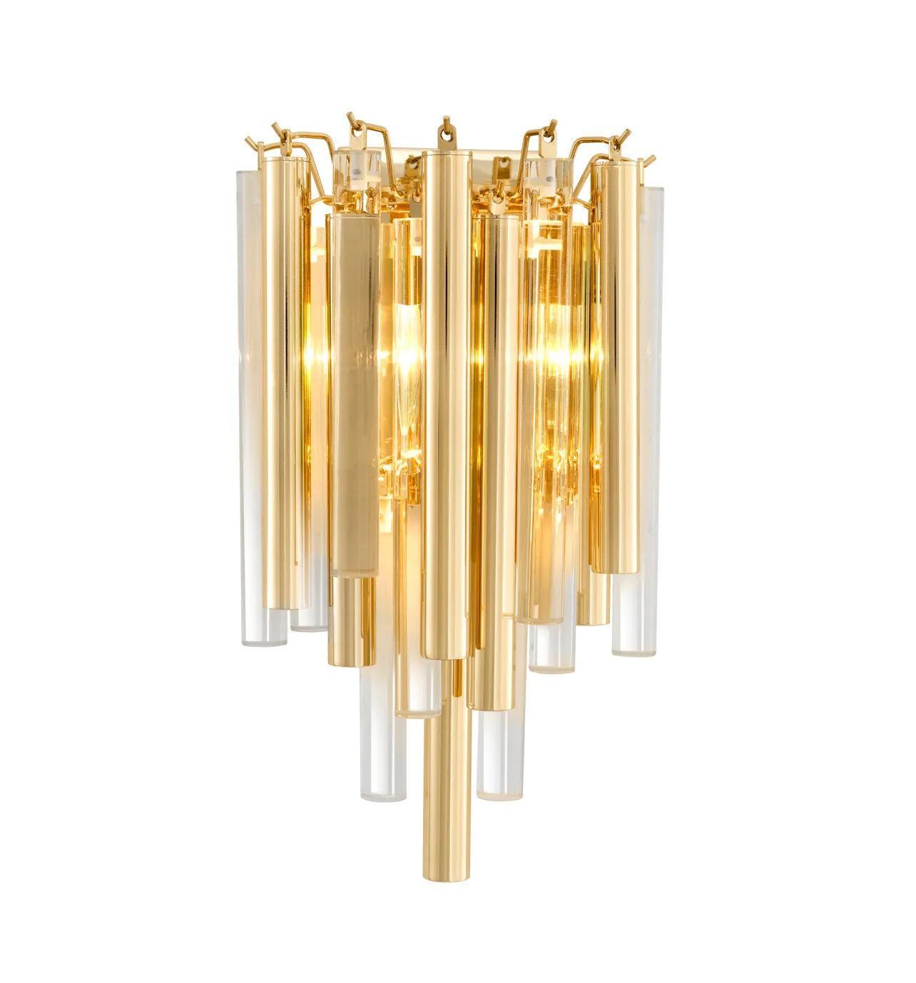 Inspired by the art deco style, golden lamp Gigi looks special and exclusive. Her semicircular, a narrowing body made of rods of transparent glass and metal in golden color emanates elegance and prestige.