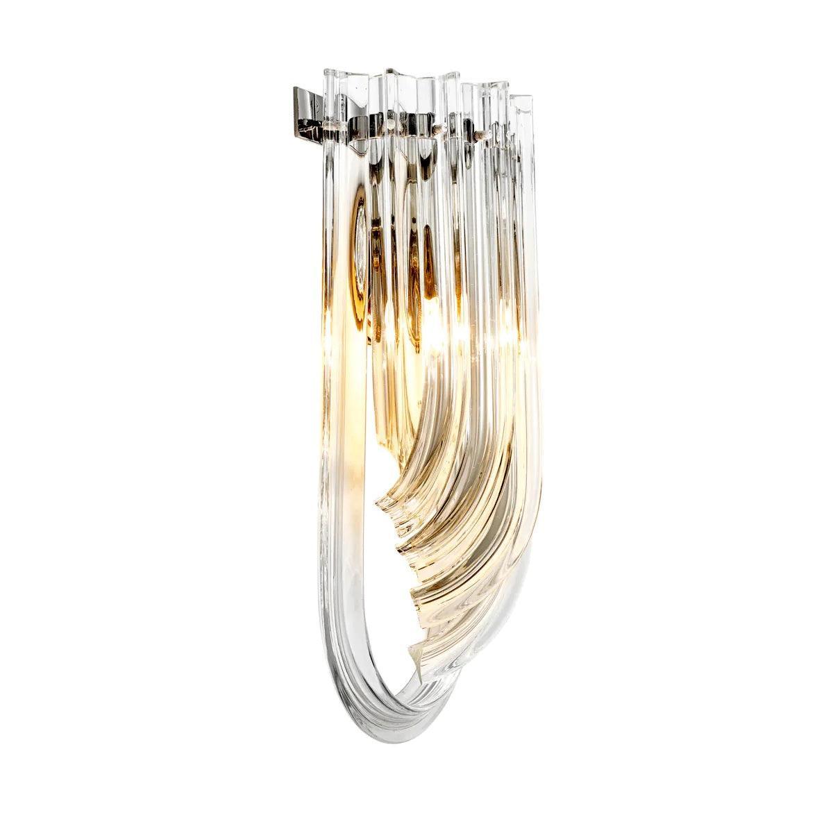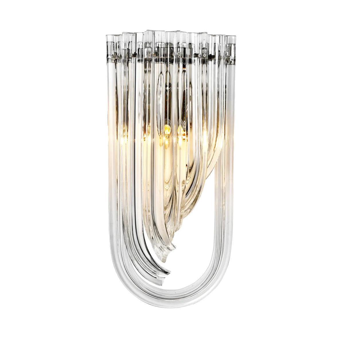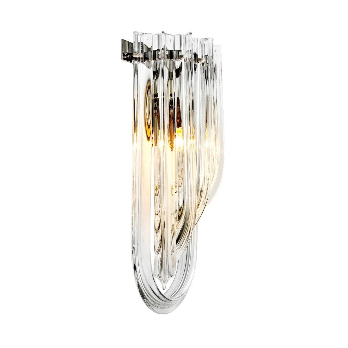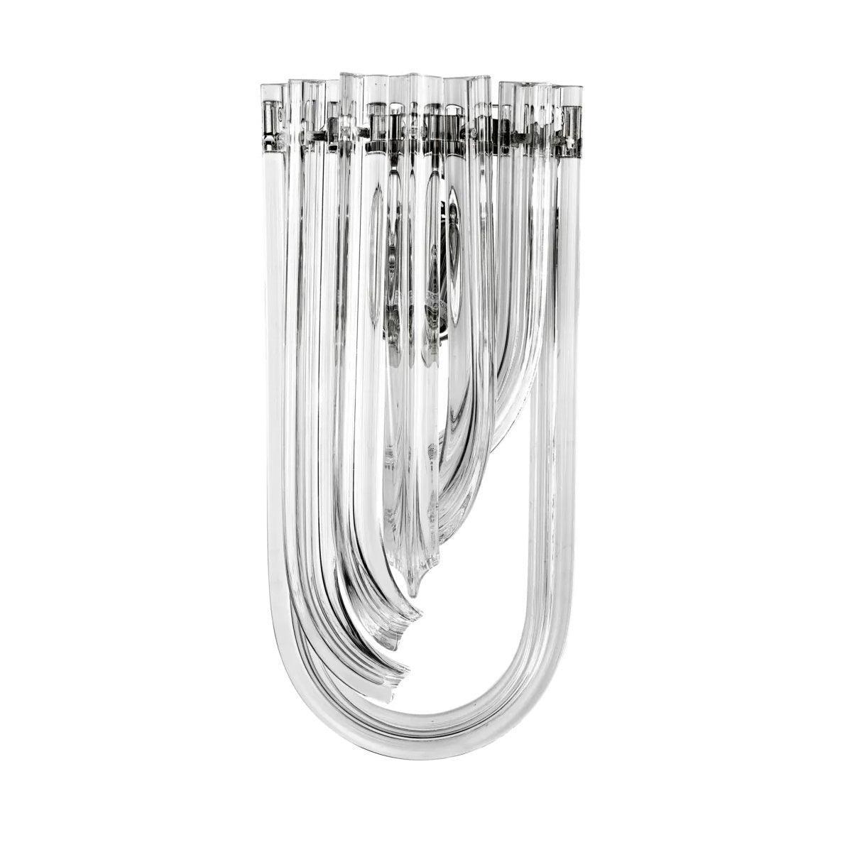 Wall lamp Greco is an elegant addition that will introduce a glow and sophisticated art deco style to your interior. Made of high quality nickel -plated metal, this luxurious wall lamp is distinguished by an unusual design. Silver lamp Greco consists of a number of long, carved drops of transparent glass, which beautifully reflect light and create effective lighting. Its unusual edition makes it an extremely effective decorative element that adds a unique character to the space.