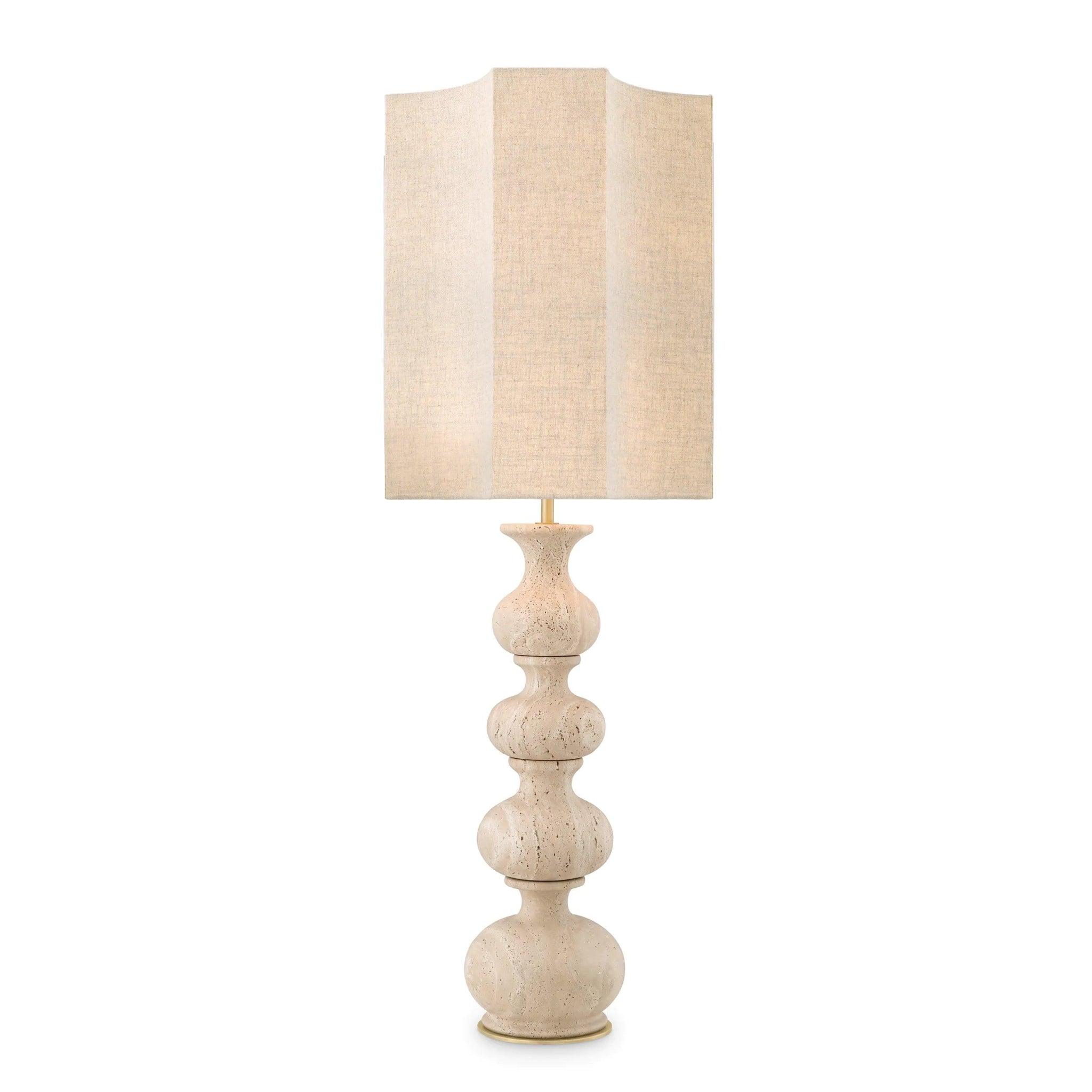 Discover the extraordinary harmony of nature and elegance thanks table lamp Mabel. This unique lamp will not only illuminate your space, but also will become a unique decorative element that attracts attention with its originality. Mabel presents a characteristic travertine base, which gives the impression that it consisted of intricately arranged vases of decreasing sizes. This unusual combination of nature and design gives the lamp a unique character.