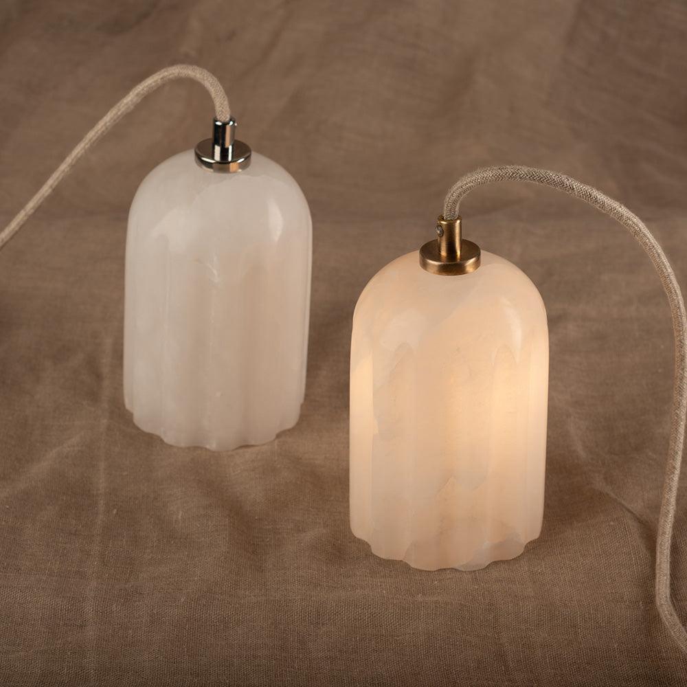 Alabaster lamp hanging Urania nickel
