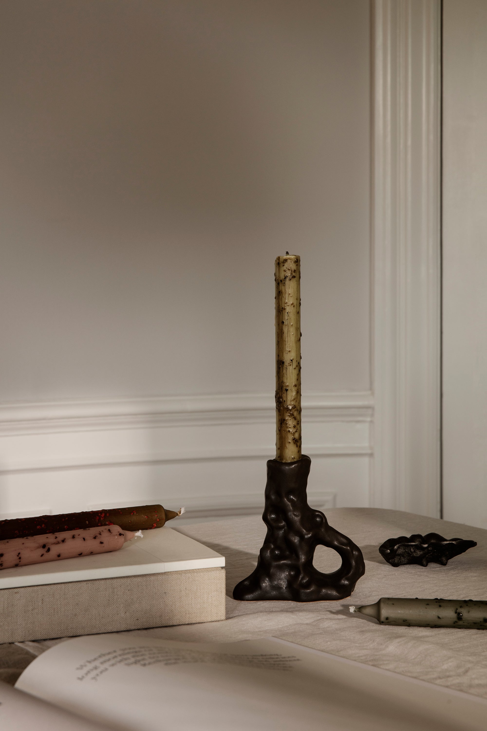 Candle holder Dito in the version with a handle is a compact and characterful accent that combines sculptural form with everyday functionality. Made of stoneware and coated with a matte reactive glaze, it delights with its unique texture and shape inspired by fingerprints in clay – it is this gesture that gave it the name Dito, which means "finger" in Italian.
