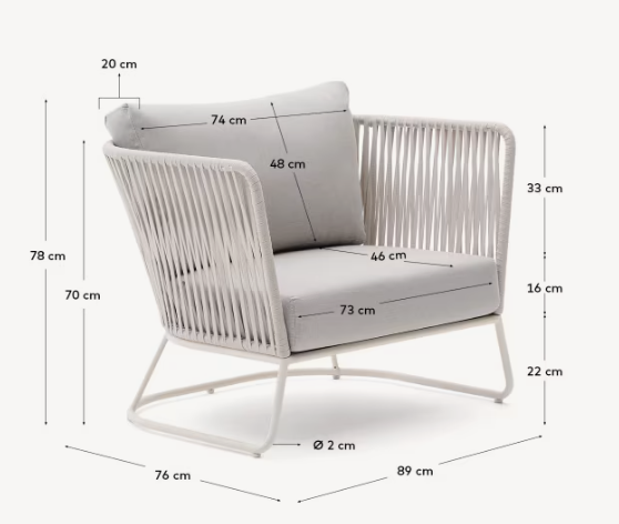 Saconca to A unique garden chair, which combines modern design with convenience and durability. Its steel structure covered with a galvanized coating ensures resistance to rust, corrosion and UV rays, making it ideal for outside use all year round. The armrests and support from hand -woven rope give it subtlety and heat, and at the same time fit into the latest trends of garden and terrace arrangements.