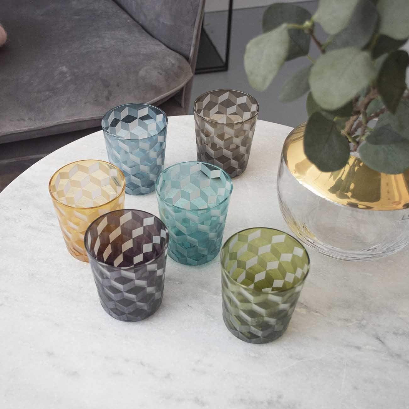 Set of glasses Blocks was made of high quality colored glass, which not only looks great, but also makes it Colorful glasses Blocks are durable and functional. Glass They have a sanded pattern reminiscent of a block, which was an inspiration to create the name of the collection. The ideal size makes the glasses of Blocks not only an ornament, but also a practical ideal element for parties.