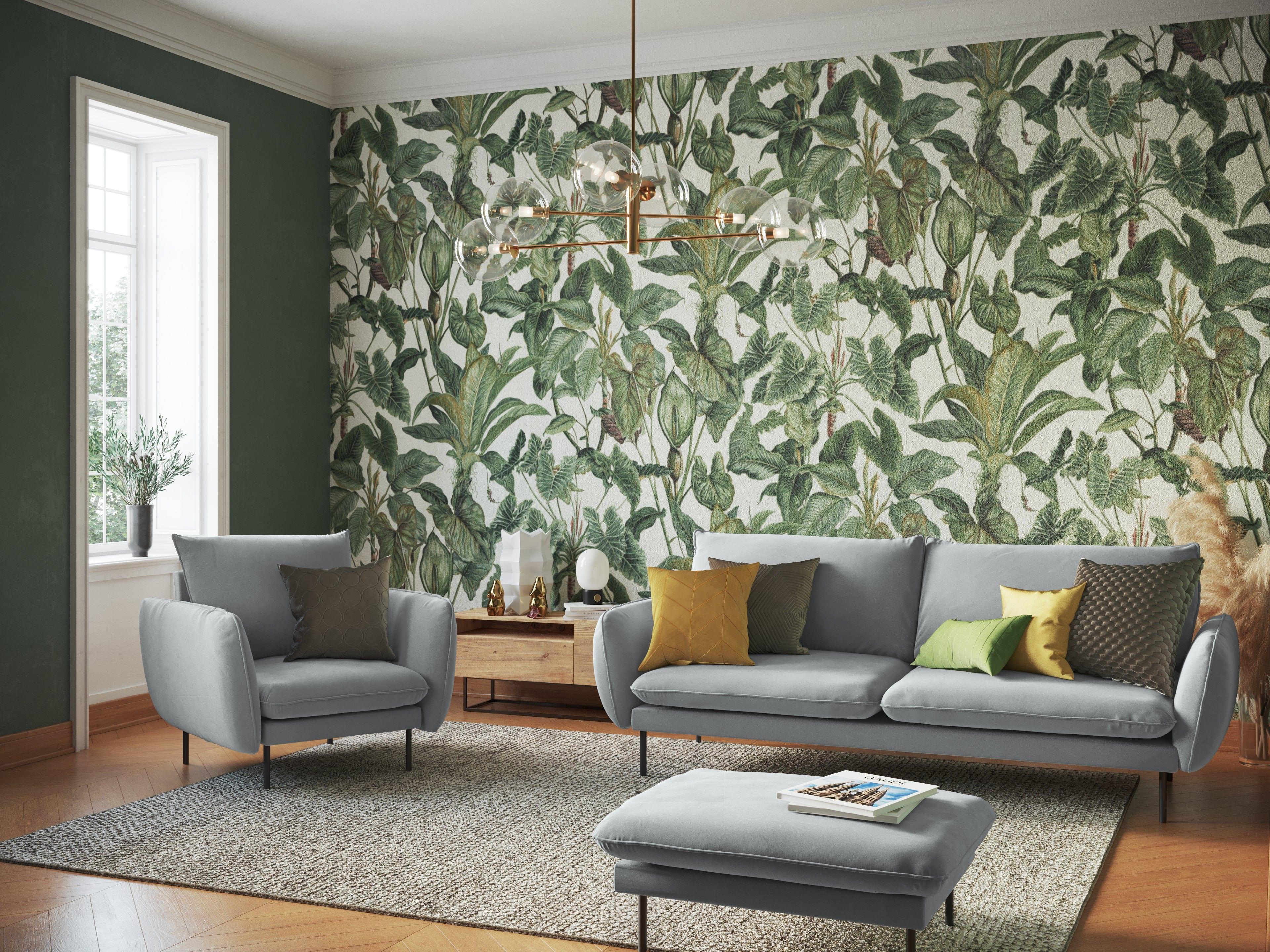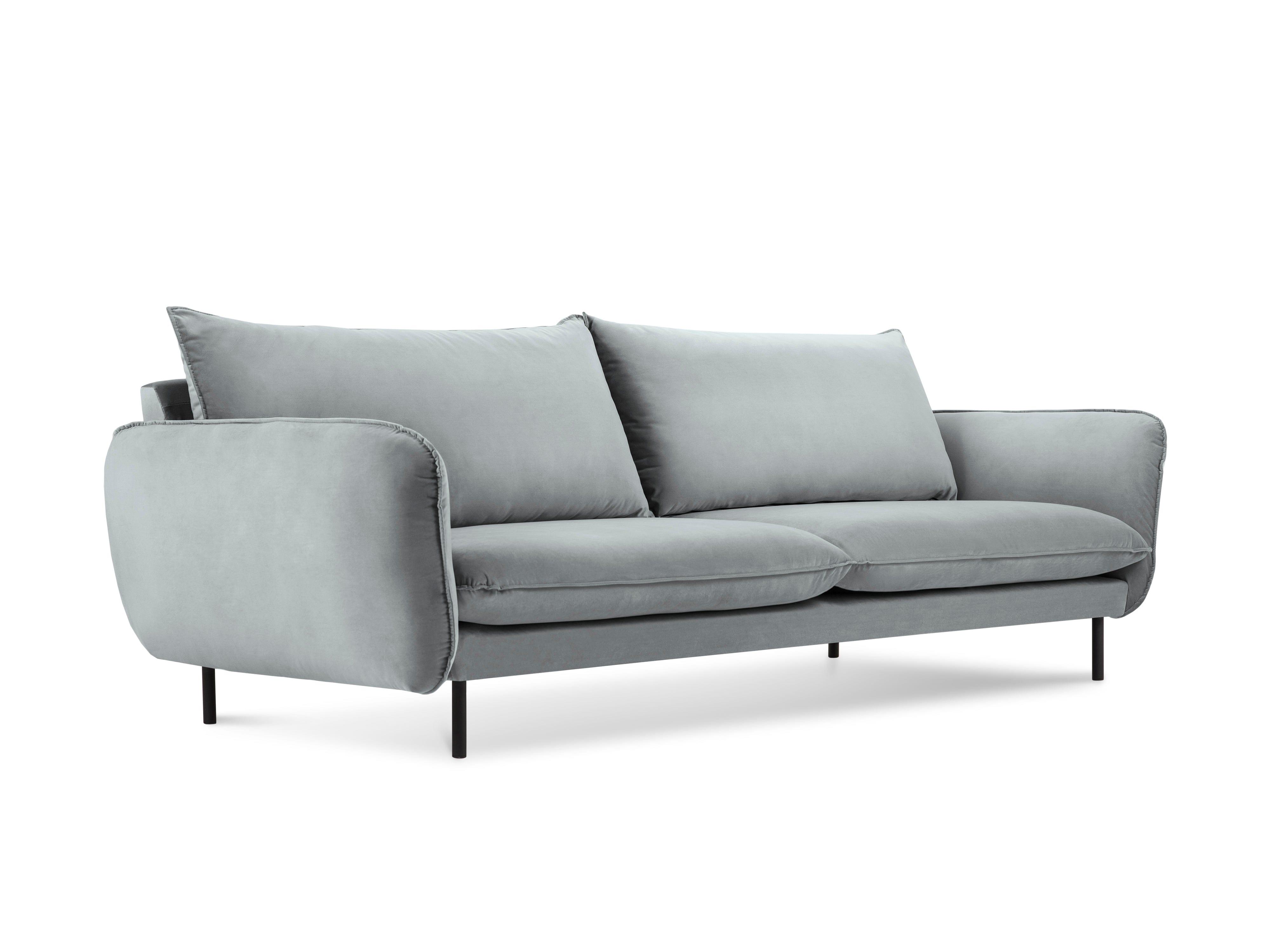 3-person Vienna Jasnoszary velvet sofa with a black base