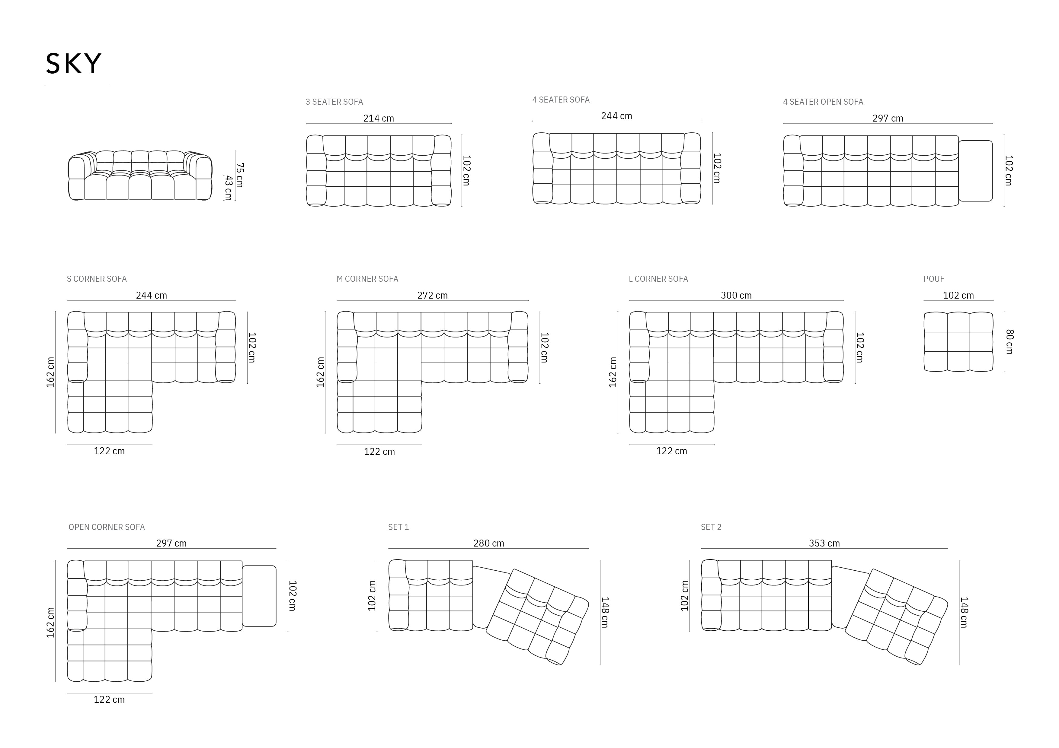 Sofa aksamitna 3-osobowa SKY jasnoszary Cosmopolitan Design    Eye on Design