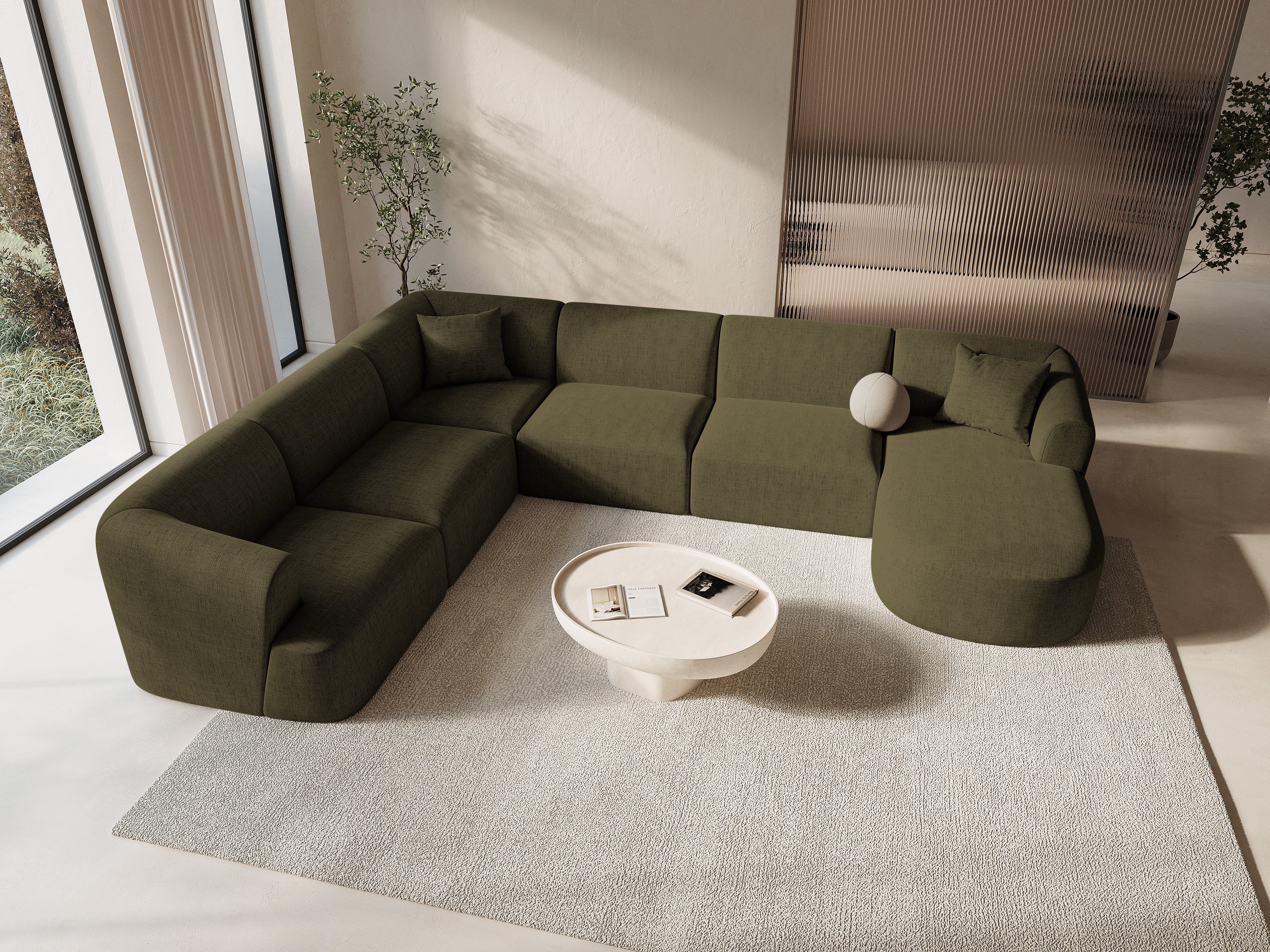 Left-sided panoramic corner sofa for 7 people CAMPI green chenille