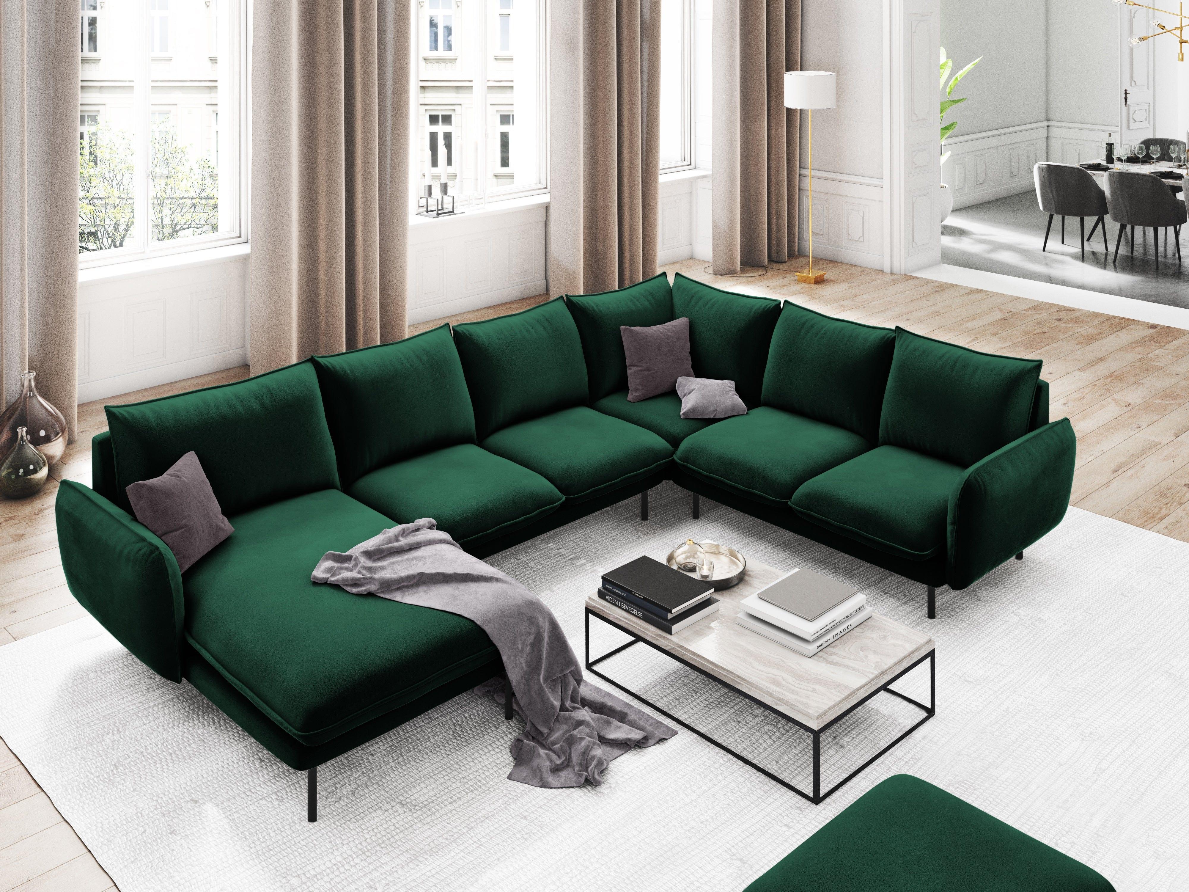 Right -sided corner velvet panoramic Vienna Green with a black base