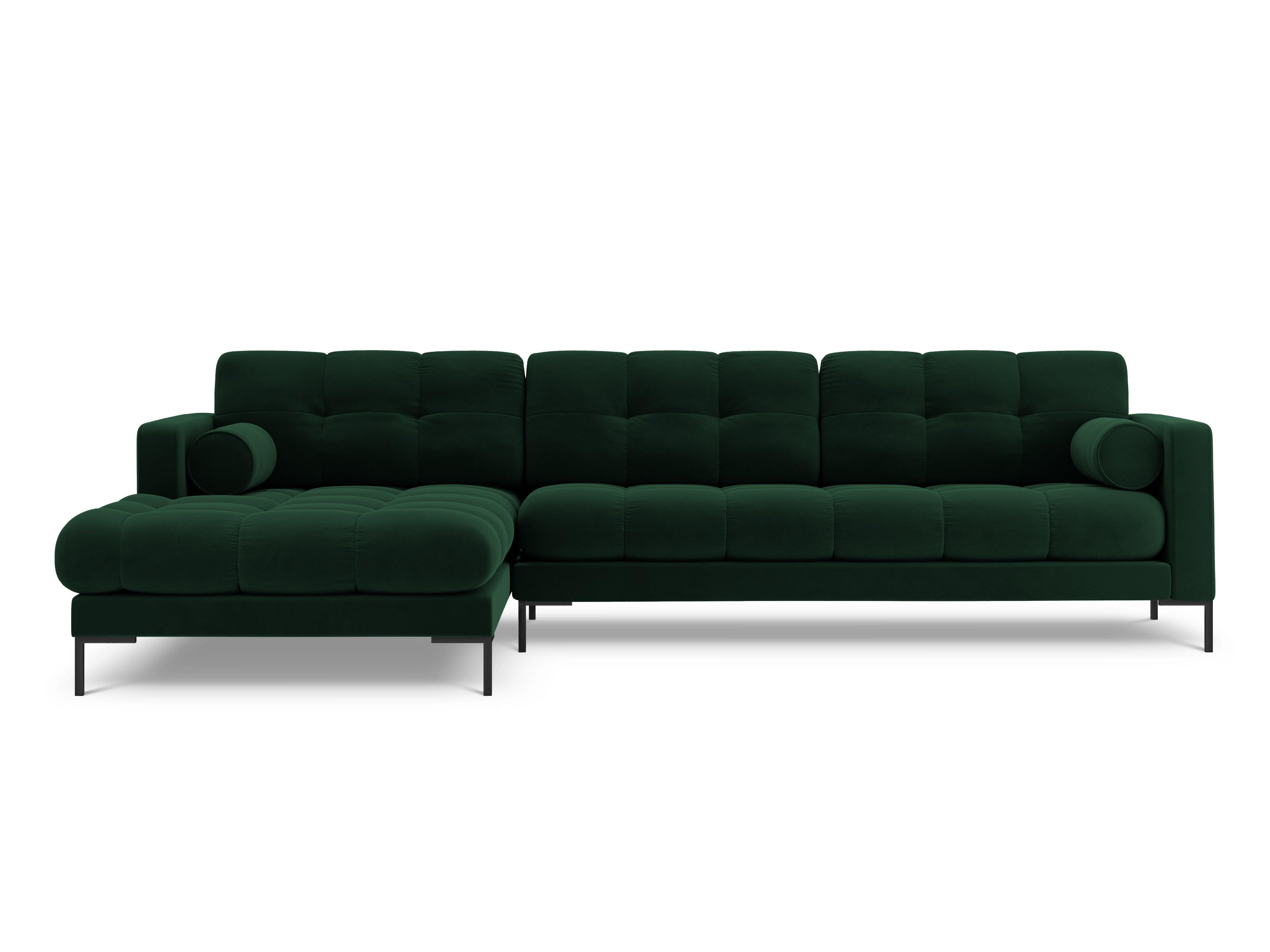 Narożnik aksamitny lewostronny BALI butelkowa zieleń z czarną podstawą Cosmopolitan Design    Eye on Design