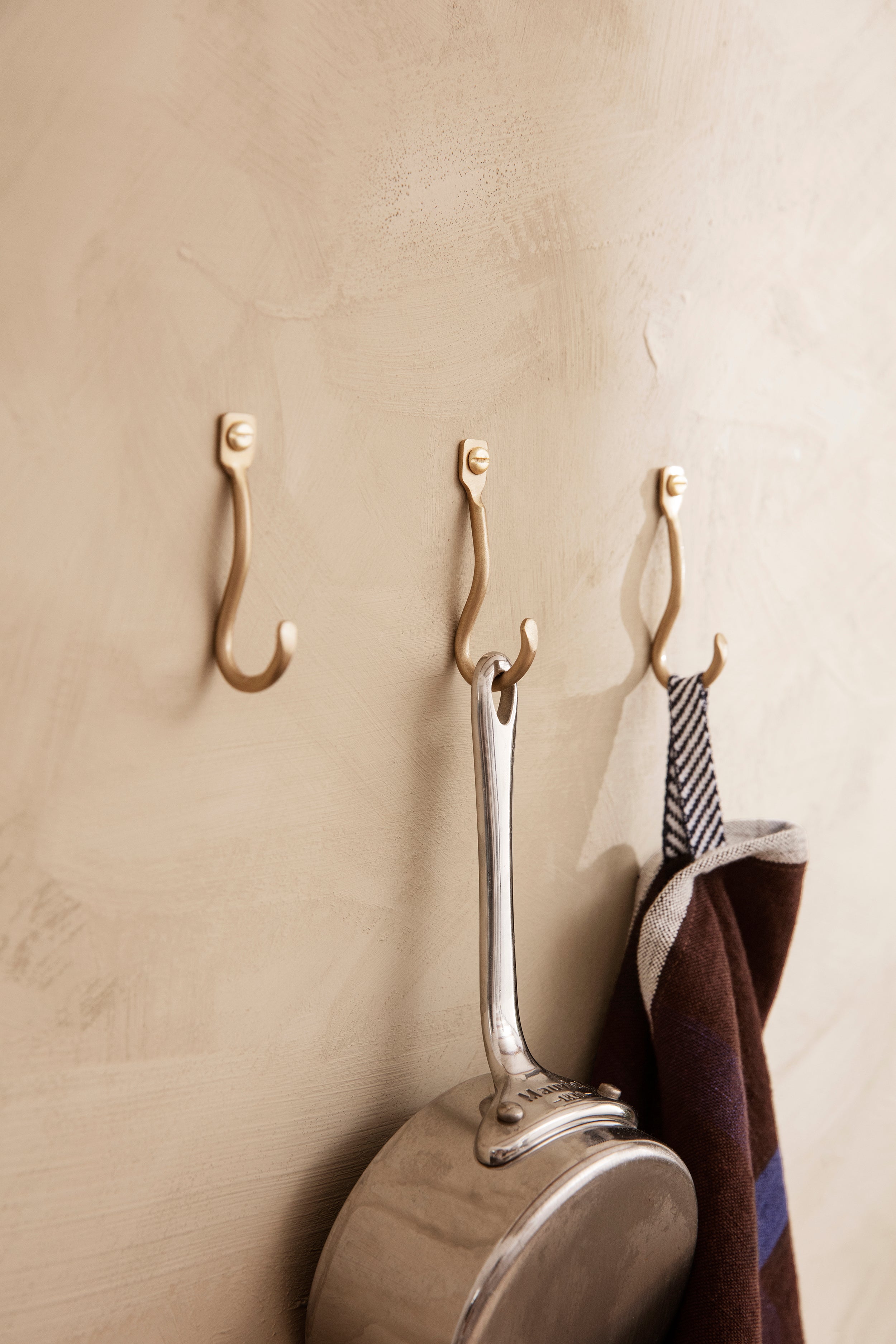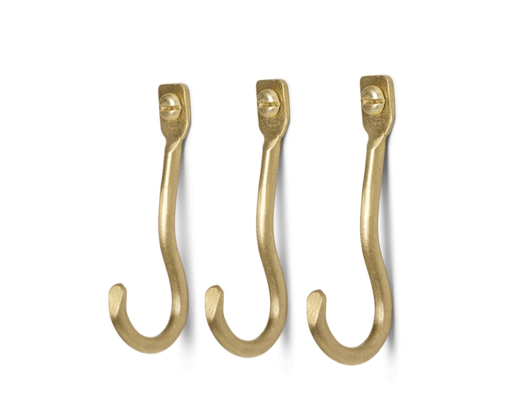 Curvature Hook Set is a subtle and decorative hook that combines elegance with functionality. Handcrafted from solid brass, they feature a gently undulating shape that adds an organic touch to any interior. Despite their small size, they are perfect for hanging everyday items – keys, jewelry, cloths, or lightweight accessories.