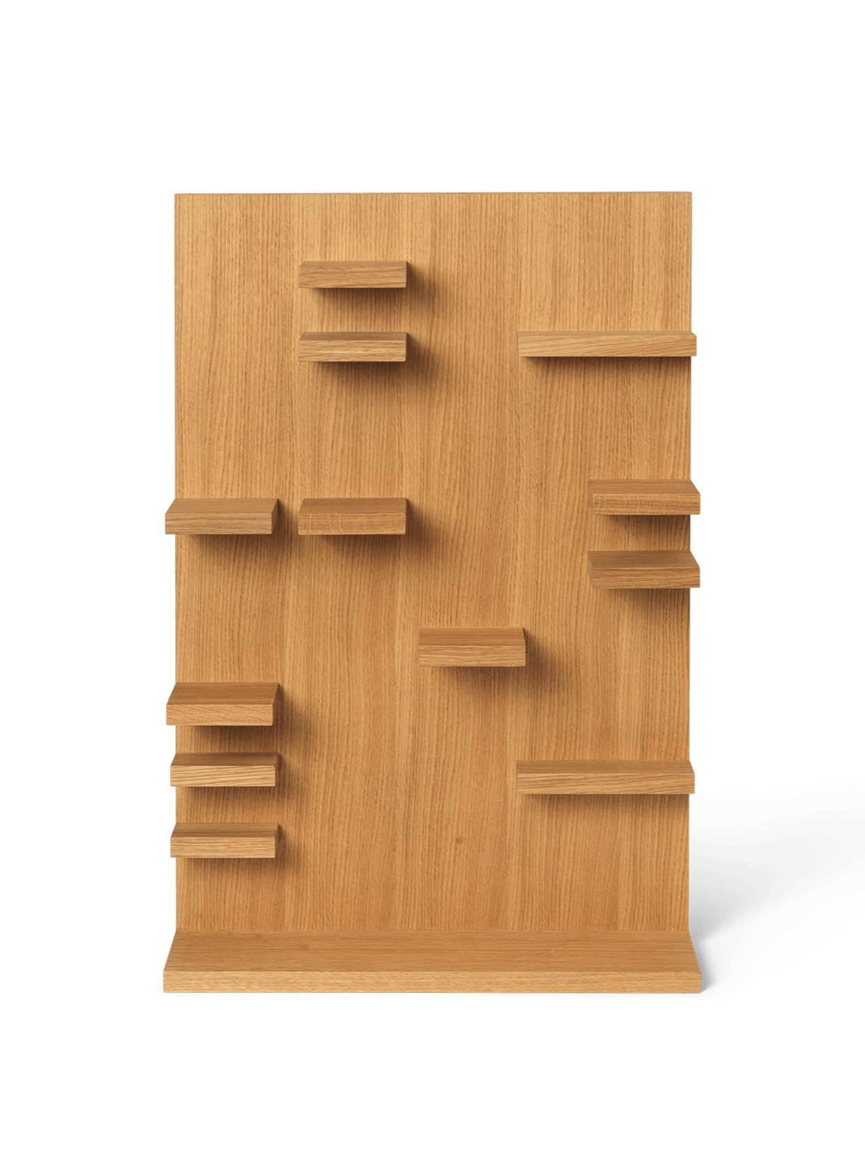 The Parade Shelf is an elegant shelf that combines functionality with exceptional design, inspired by traditional Danish sættekasser – boxes for small items. In collaboration with artist Leise Dich Abrahamsen, this piece of furniture allows for the creation of personal, charming displays for your favorite mementos and little treasures. Made from durable, certified oak plywood with an MDF core, the Parade Shelf is a blend of aesthetics and sturdiness that will seamlessly fit into various interior styles, bringing harmony and elegance to your space.