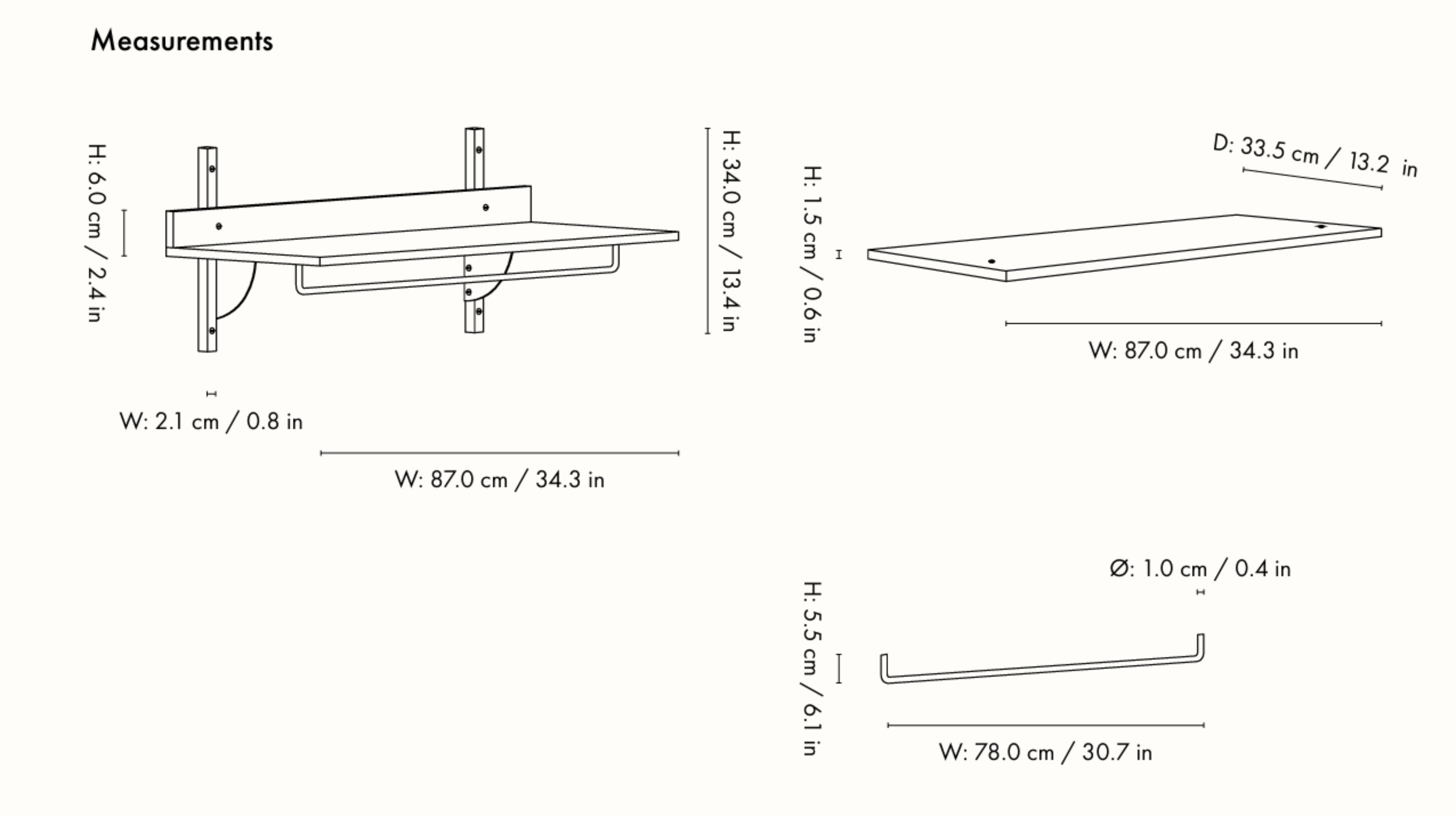 Sector Rack Shelf with railing is an elegant and modern proposal inspired by classic mid-century shelves. Made from black ash veneer and solid wood, finished with brass brackets and railing, it serves as a practical and decorative element of your decor. Its simple form and visible mounting screws highlight a raw aesthetic, perfect for both the hallway and the bedroom.