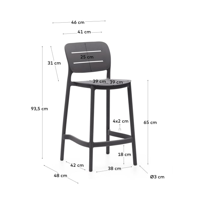 Discover the perfect combination of versatility and stylish design in bar chairs Morella. Made of durable plastic, resistant to UV radiation and recycling, Morella chairs are ideal for both interiors and outside.