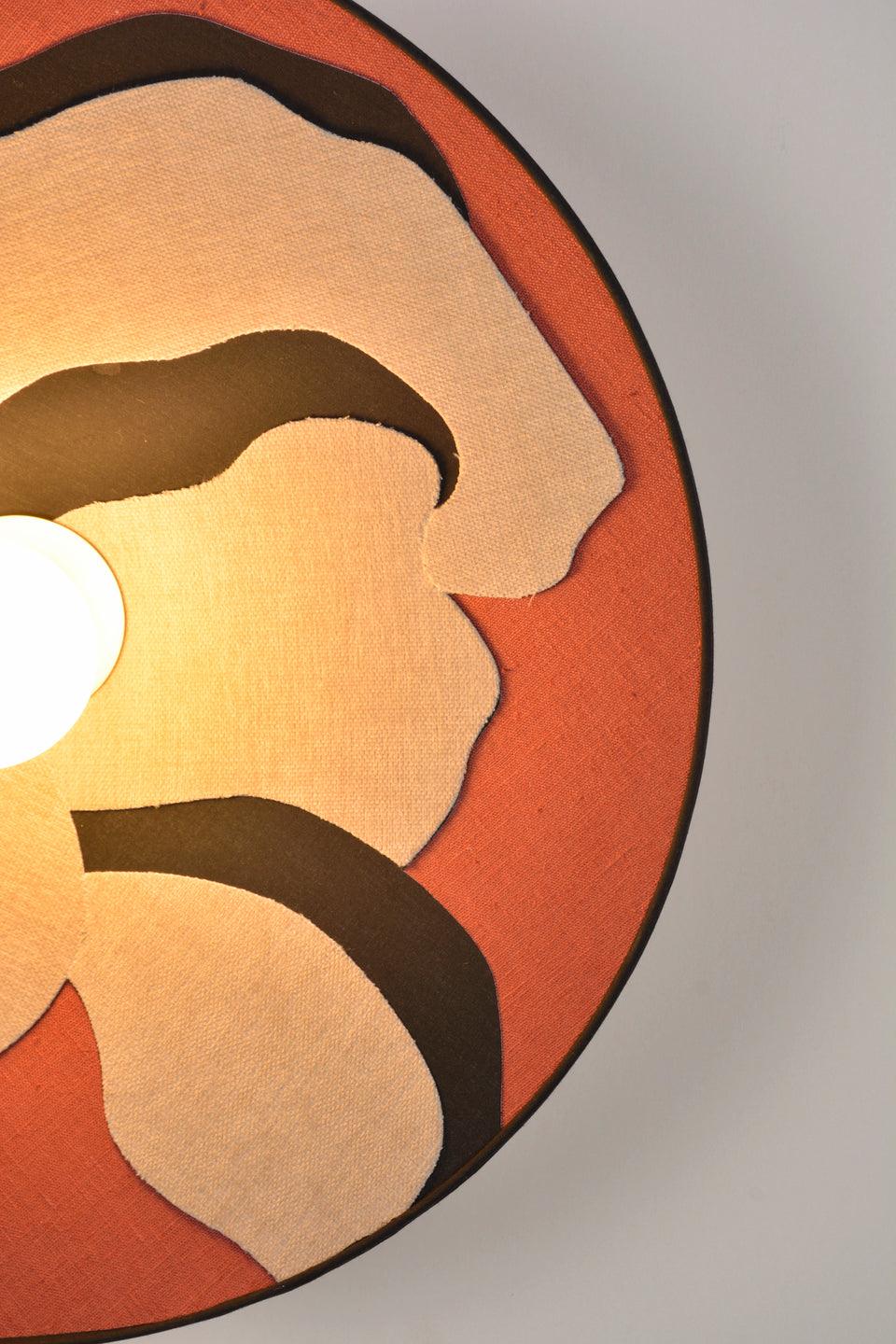 Sconce Sonia Laudet in a carmine shade looks as an elegant decorative element, which is conical wall lamp Made of two types of high quality fabrics. These fabrics harmonize with each other, creating a unique pattern that generates a delicate light, adding a unique character to the interior.