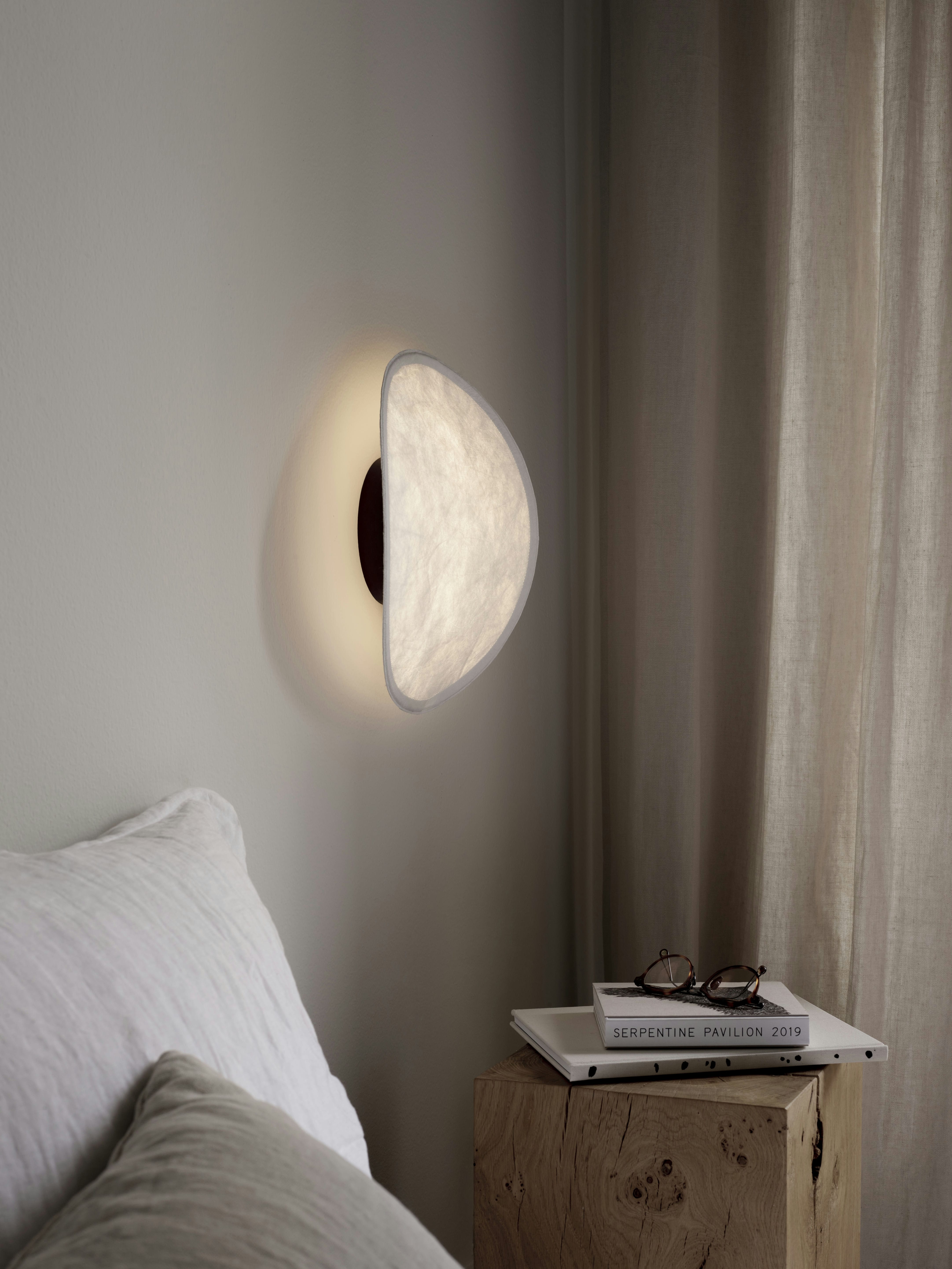 Sconce TENSE is part of the collection created by the Panthe & Tourron designers duo for the New Works brand. The inspiration for the series was the tension of the material, which gives the lamps a light and liquid form. The cloud -like TENSE wall lamp subtly distracts light, creating the effect of a sculptural structure that perfectly blends with various architectural styles.
