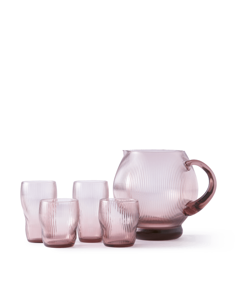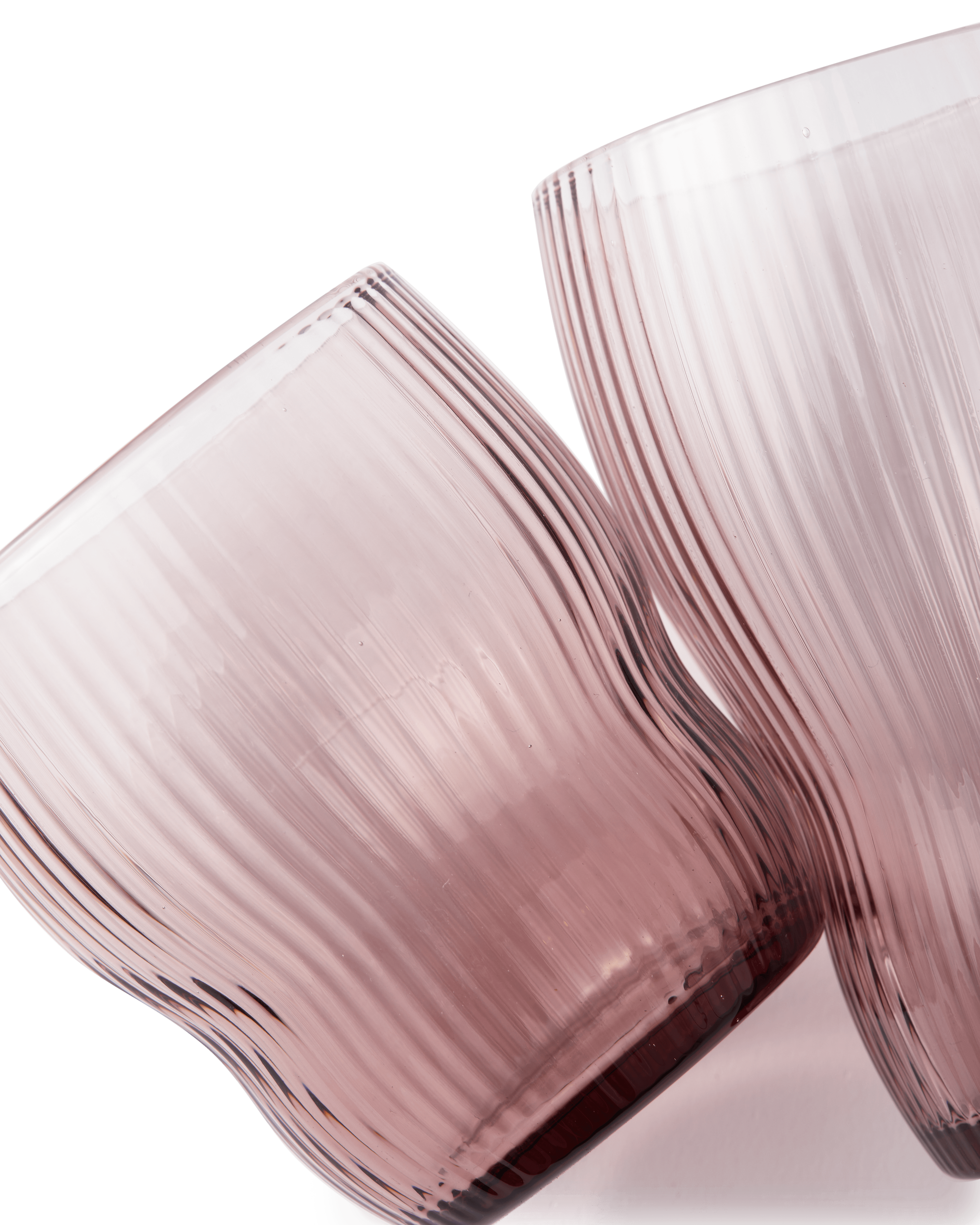 Set of glasses Pum in plum color made of durable glass is an extremely effective element of equipment. Their contoured protrusions and round shapes give them a unique character, resembling both elements of nature and a fairy -tale world. These elegant glasses are not only practical, but also are a beautiful interior decoration, ideal for serving your favorite drinks.