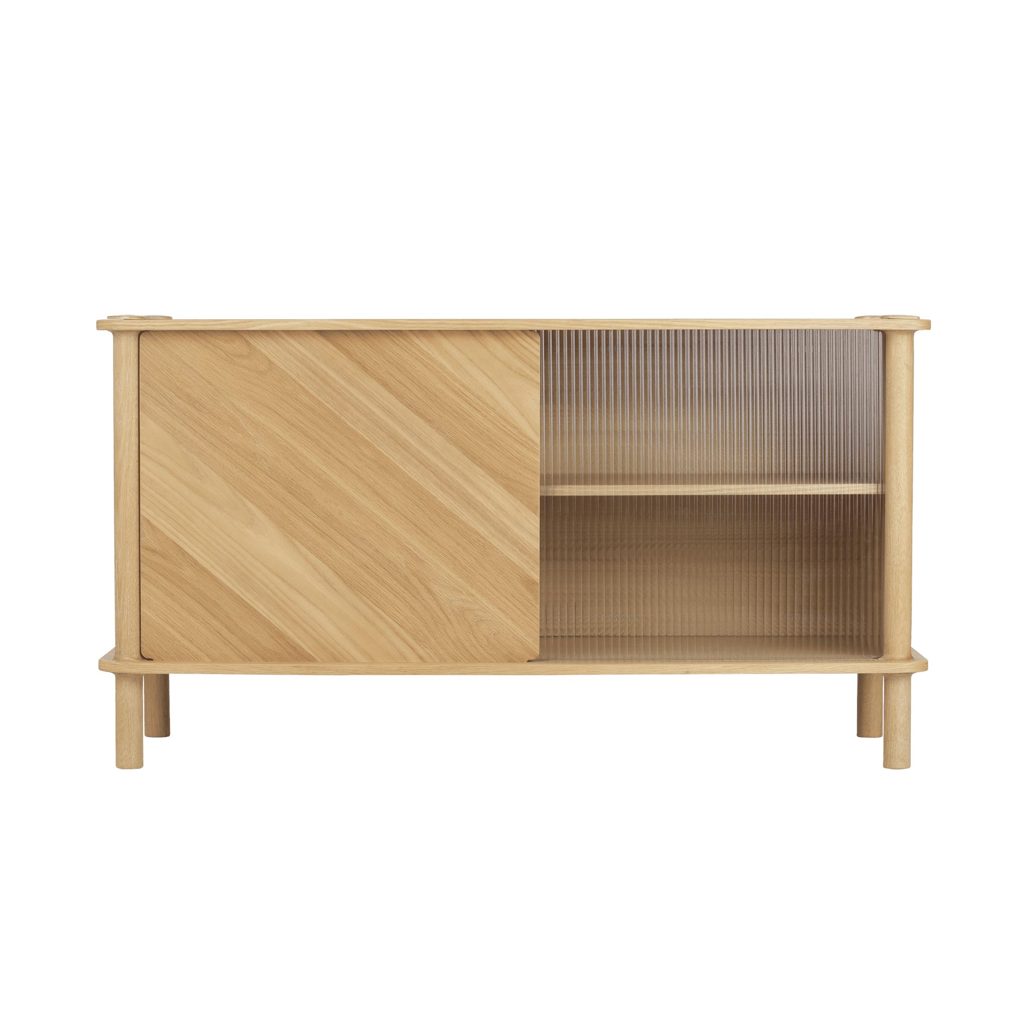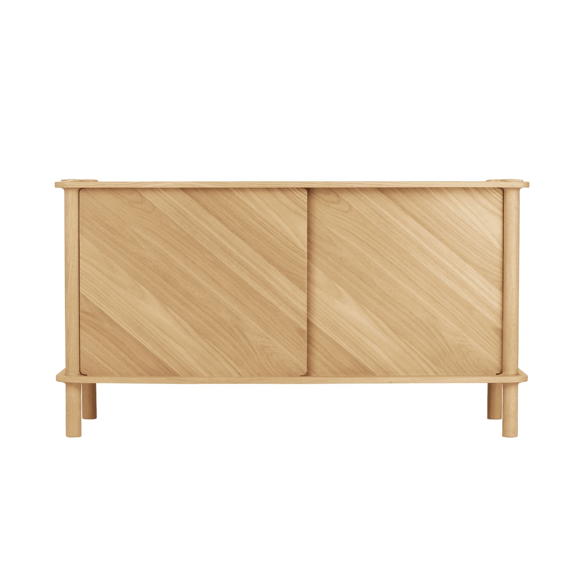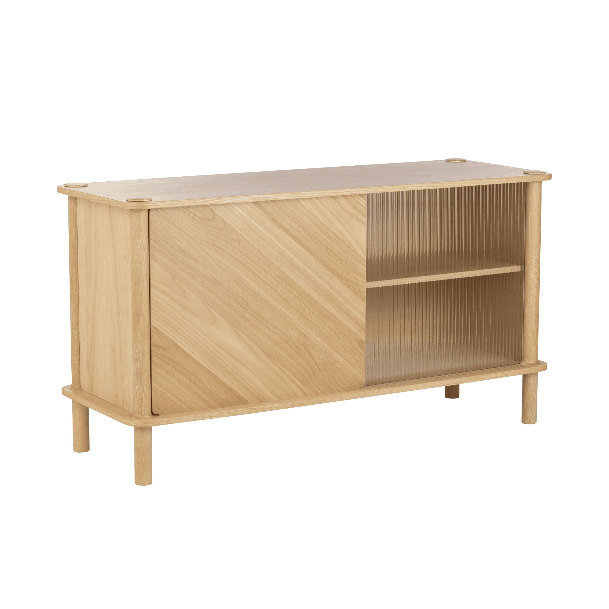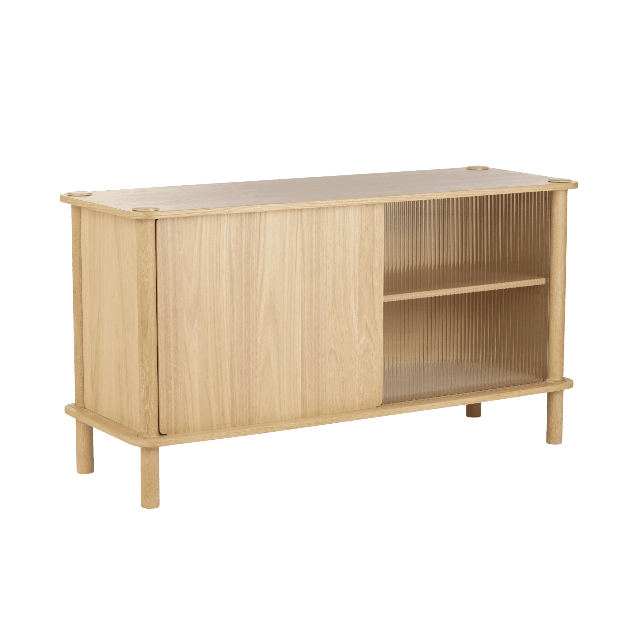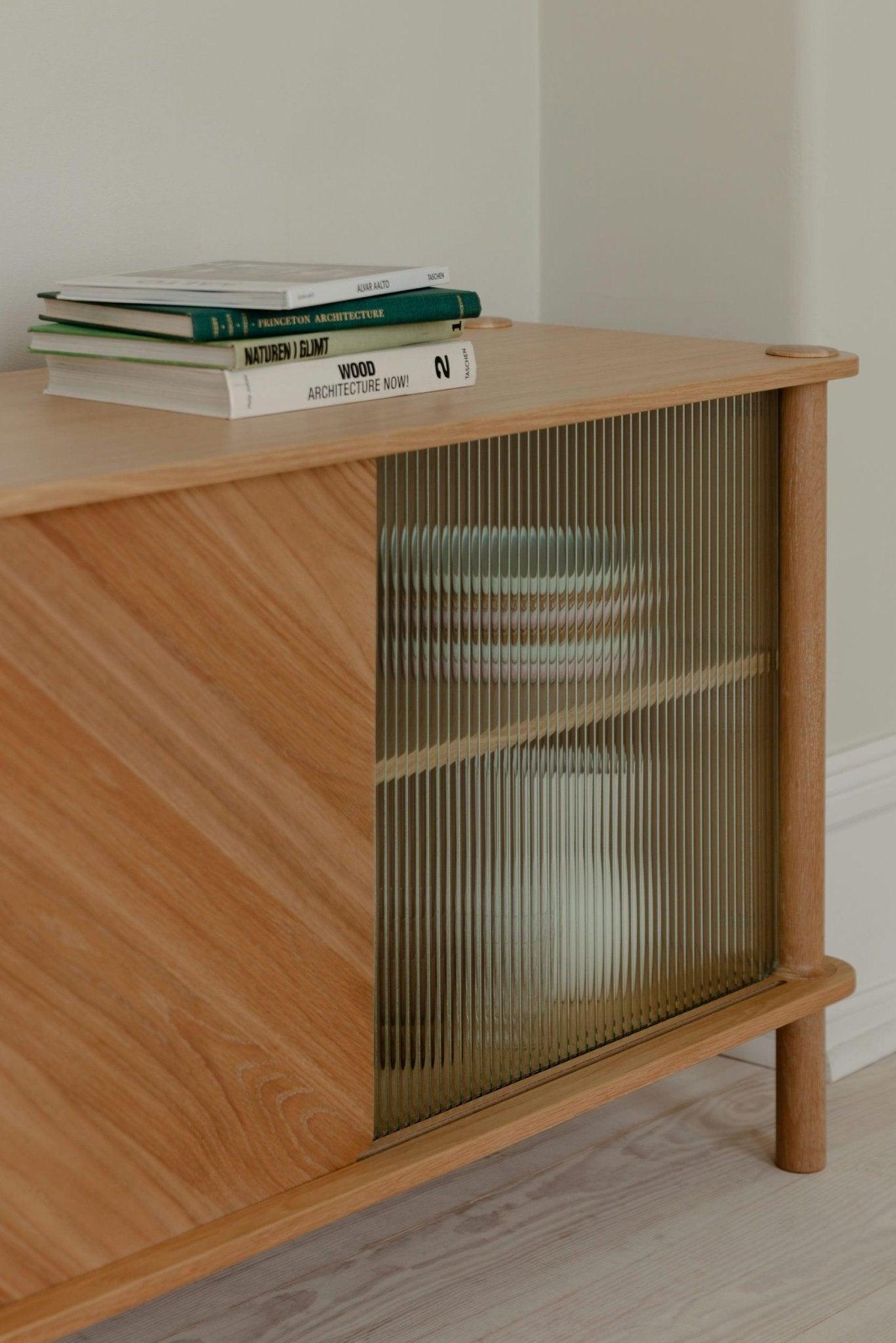Thanks to the door of a dresser made of grooved glass or oak wood, you can personalize and increase the level of interior aesthetics. The door can be replaced and adapted, creating a harmonizing effect with every style. Wooden doors have a double -sided finish: one side with a veneered diagonal panel, giving the furniture a unique character, and the other side with vertical vertical veneer, ensuring a timeless look.