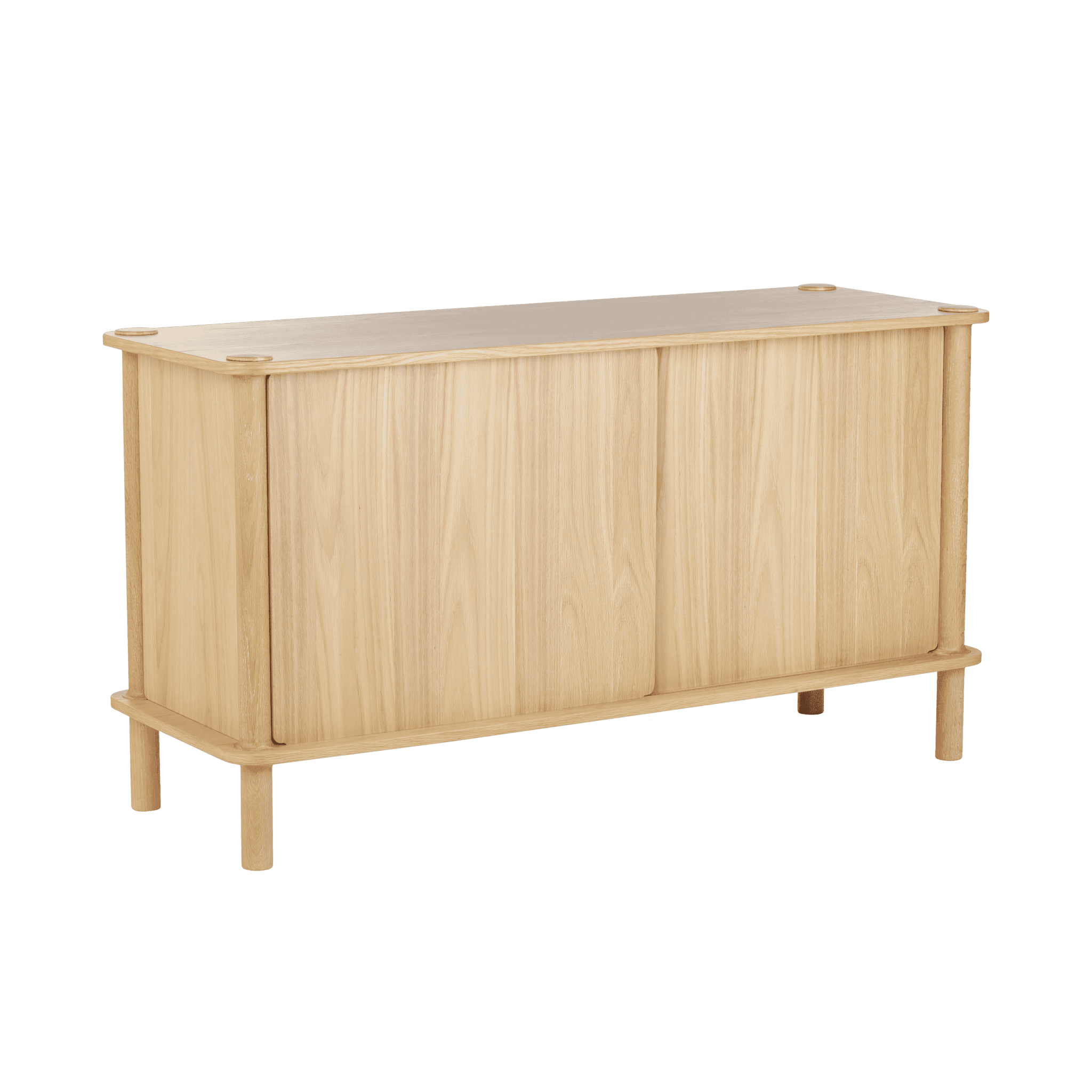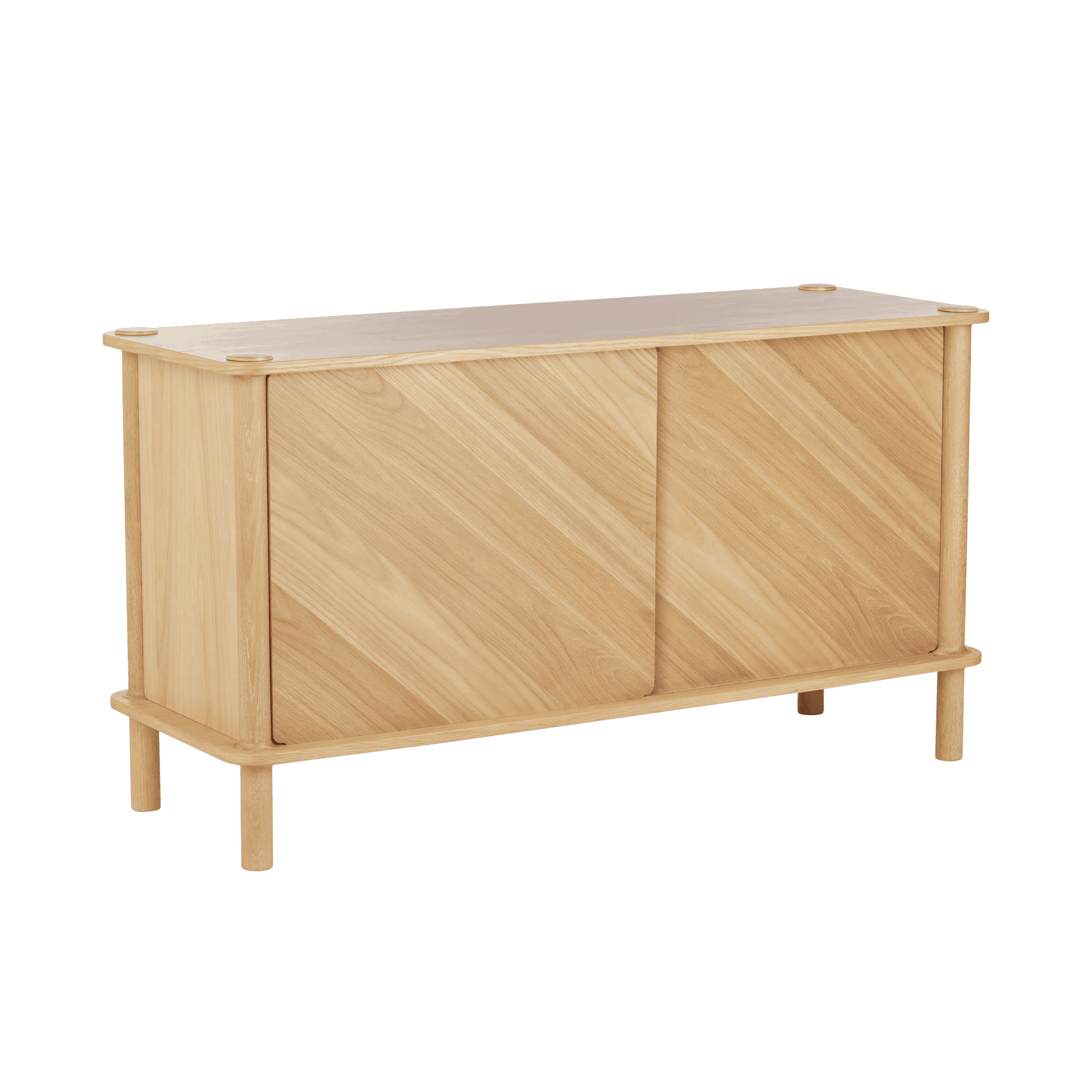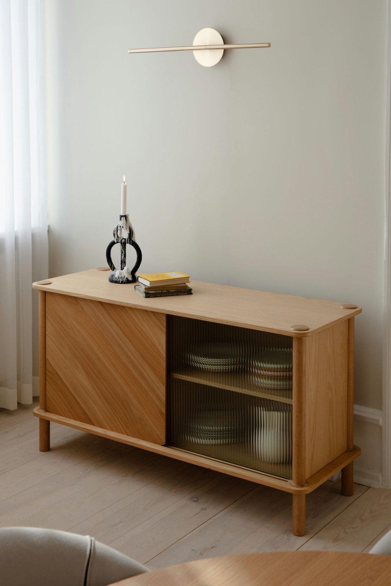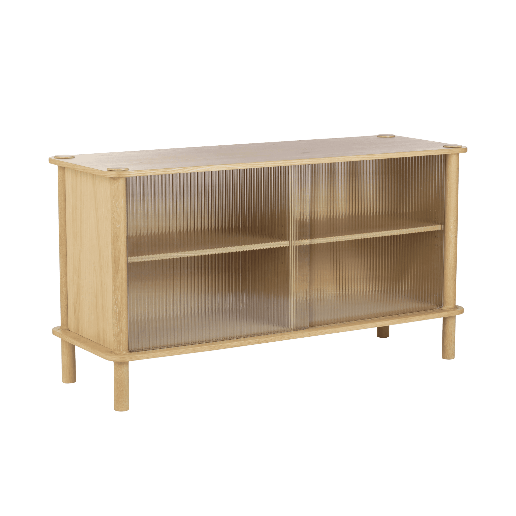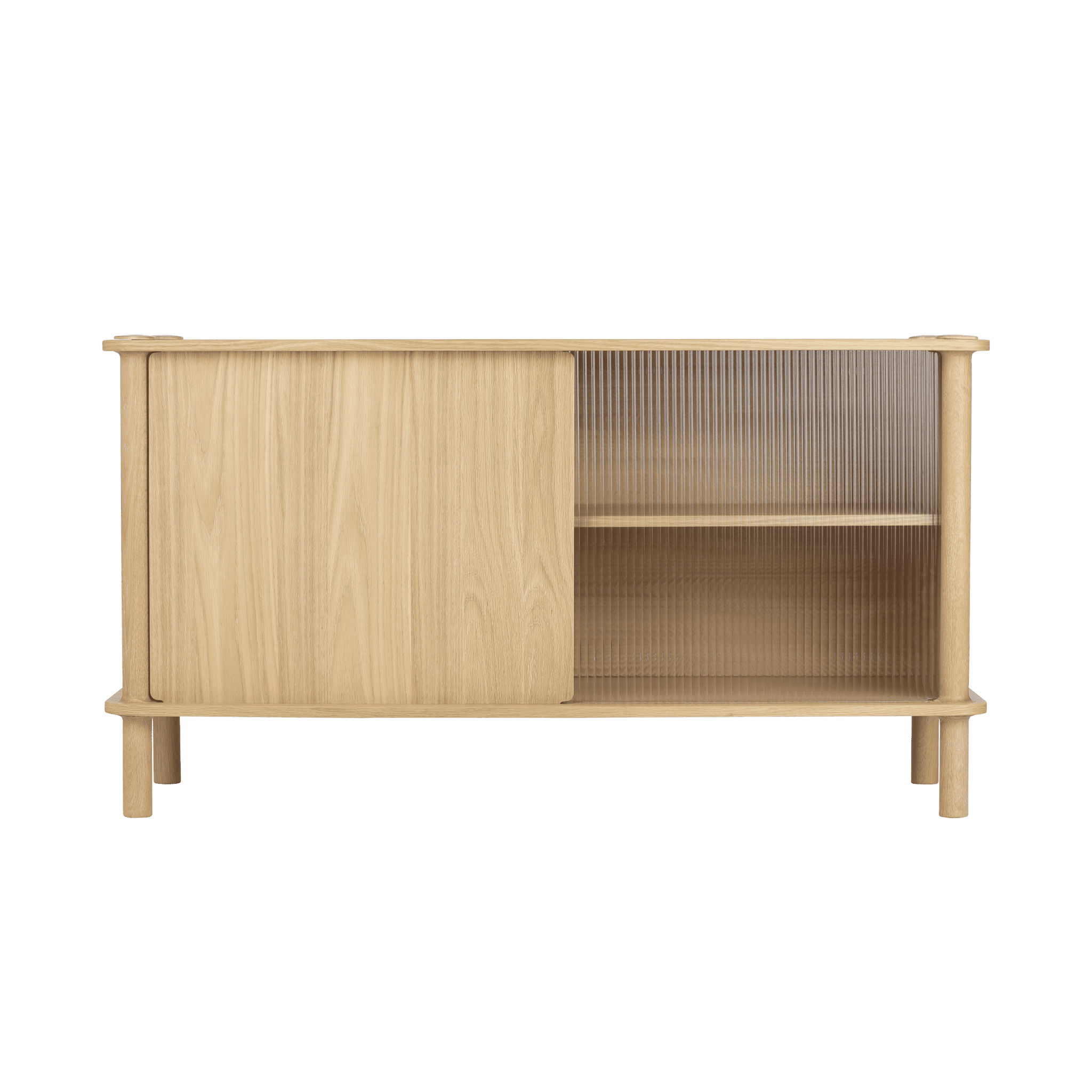 Thanks to the door of a dresser made of grooved glass or oak wood, you can personalize and increase the level of interior aesthetics. The door can be replaced and adapted, creating a harmonizing effect with every style. Wooden doors have a double -sided finish: one side with a veneered diagonal panel, giving the furniture a unique character, and the other side with vertical vertical veneer, ensuring a timeless look.