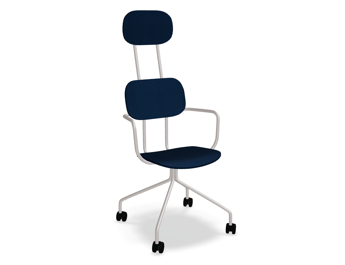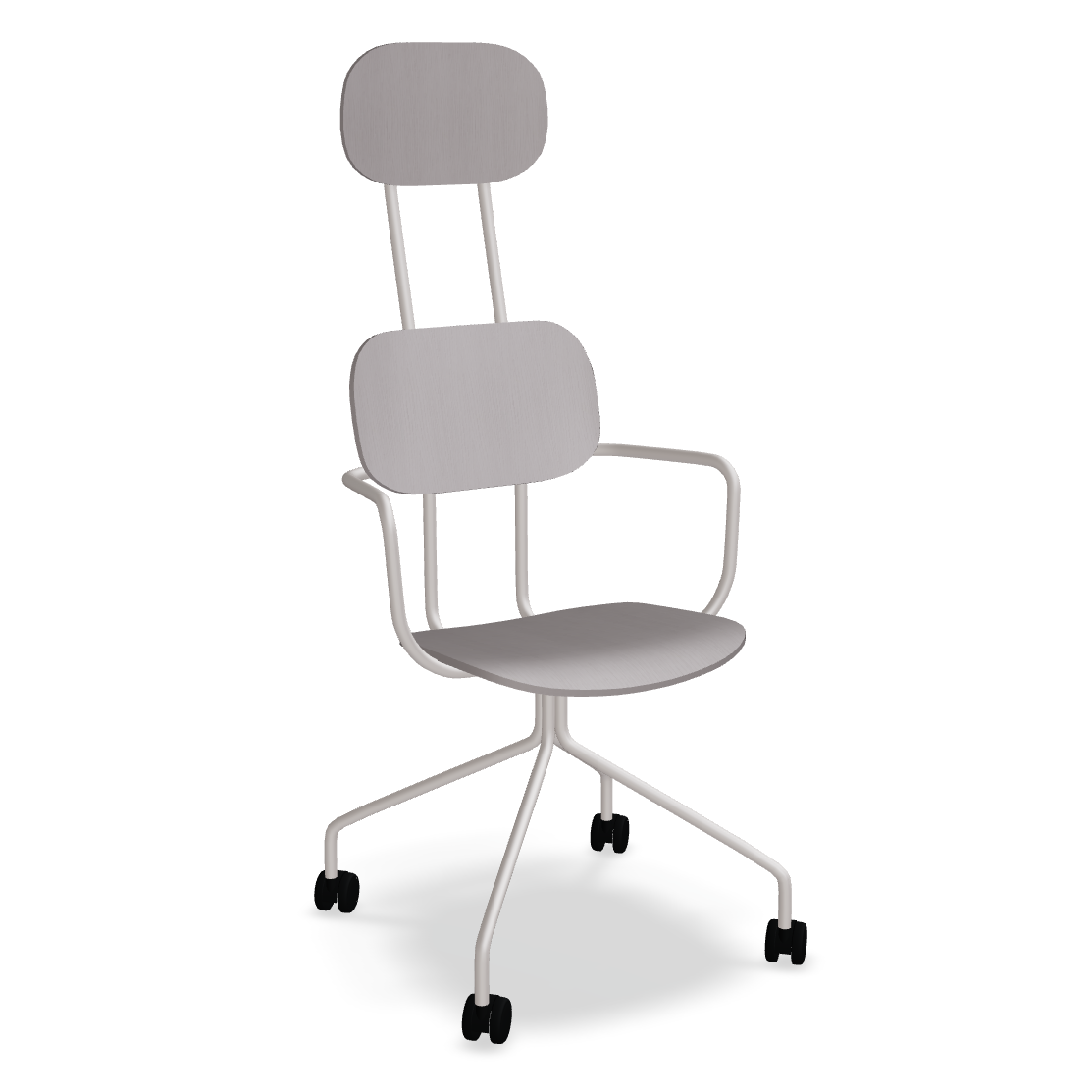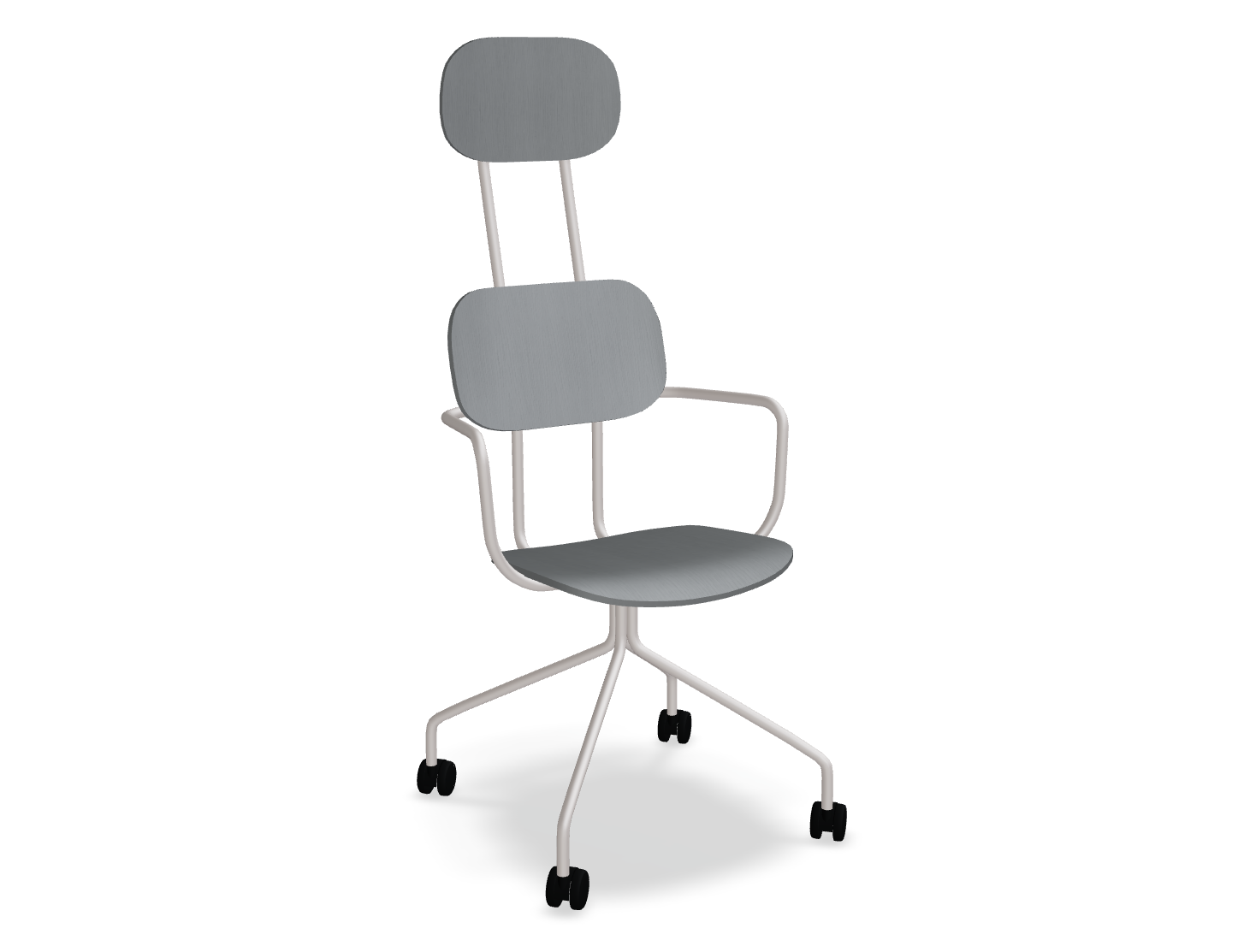 Office chair with headrest New School, designed by Studio Form US with Love, attracts attention with a modern form of double support. This version provides support for the whole back, and the headrest additionally increases the comfort of use. Thanks to the wheels and armrests, the New School chair is not only comfortable, but also functional, allowing for freedom of movement and a comfortable position, even during a longer sitting.