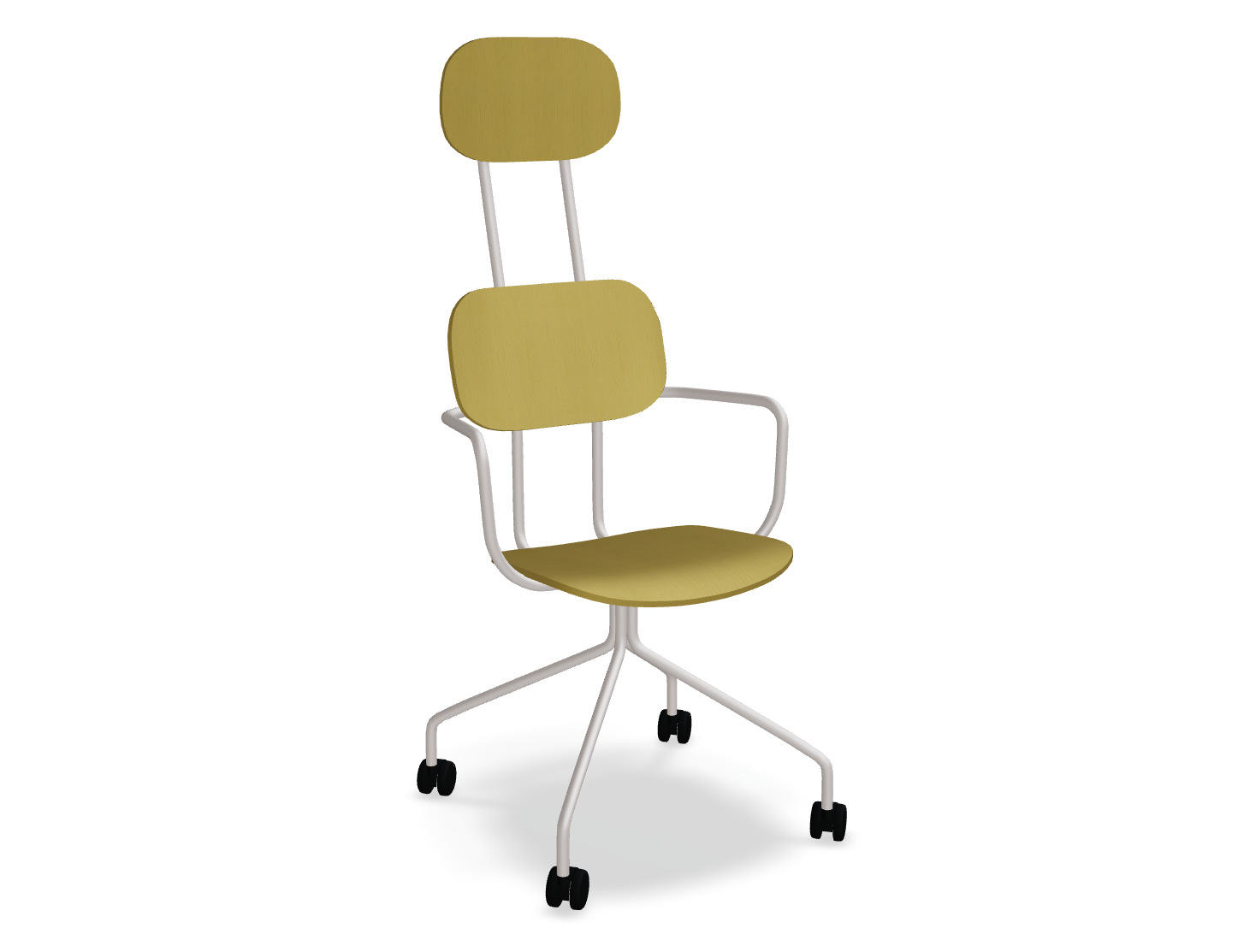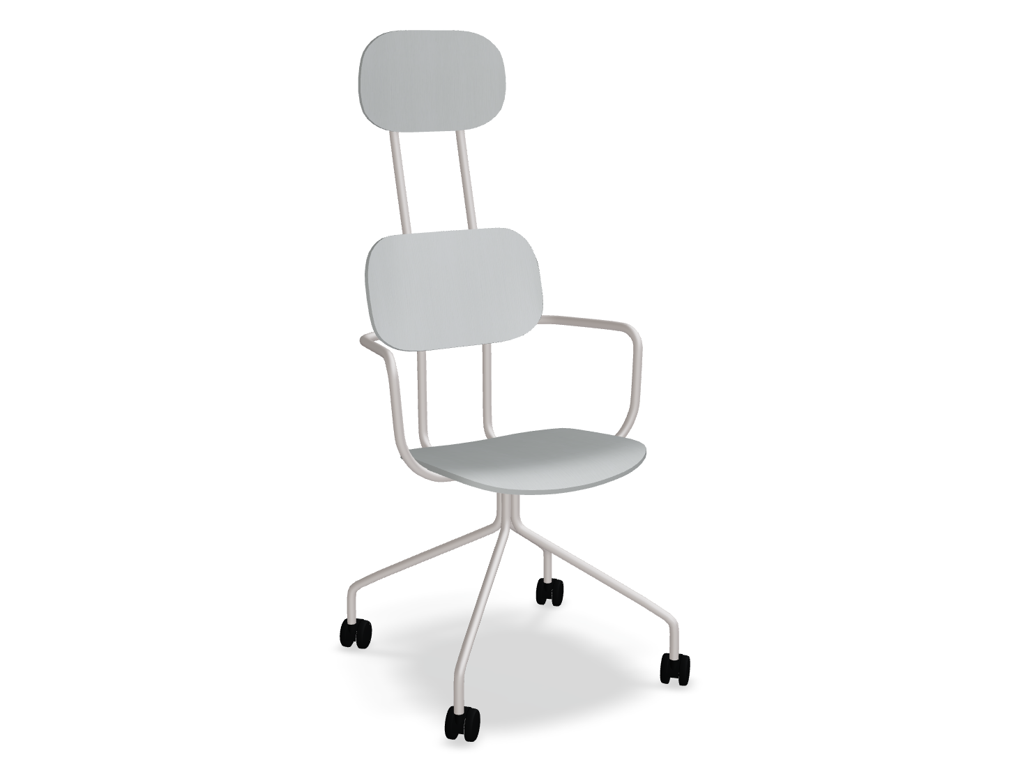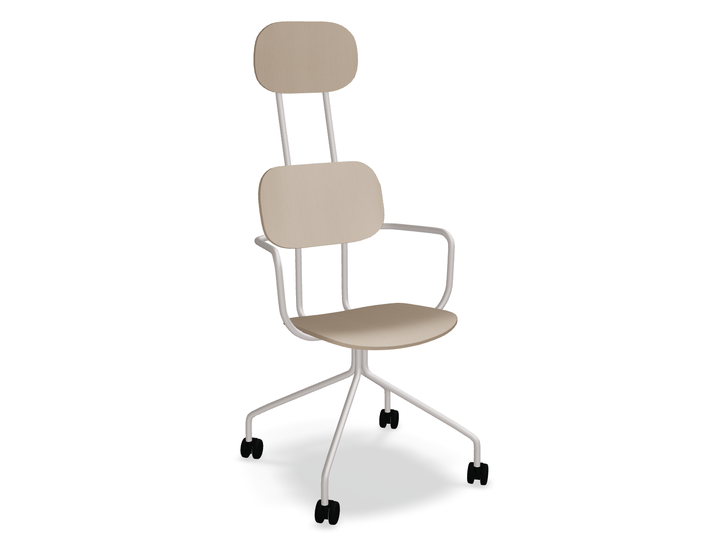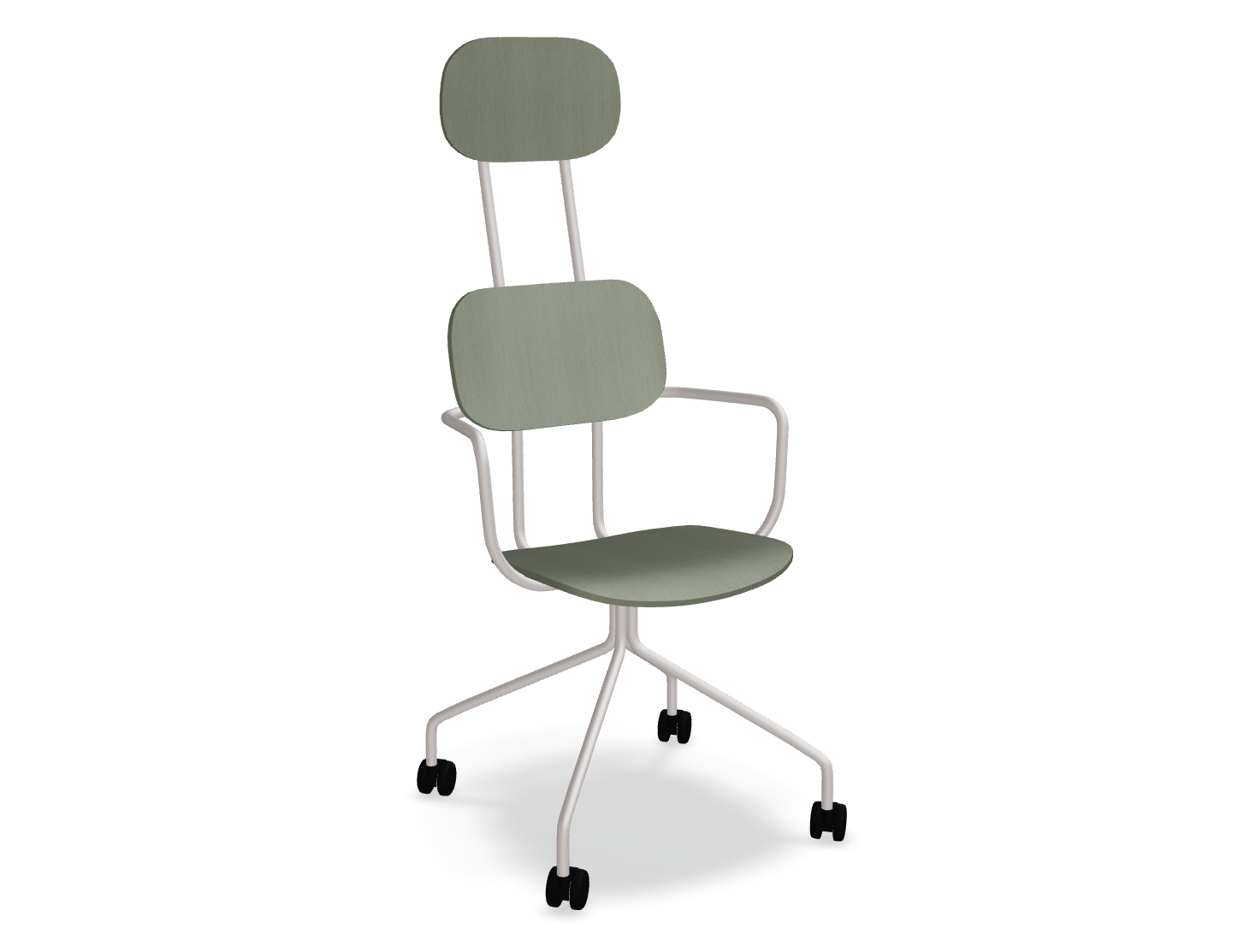 Office chair with headrest New School, designed by Studio Form US with Love, attracts attention with a modern form of double support. This version provides support for the whole back, and the headrest additionally increases the comfort of use. Thanks to the wheels and armrests, the New School chair is not only comfortable, but also functional, allowing for freedom of movement and a comfortable position, even during a longer sitting.
