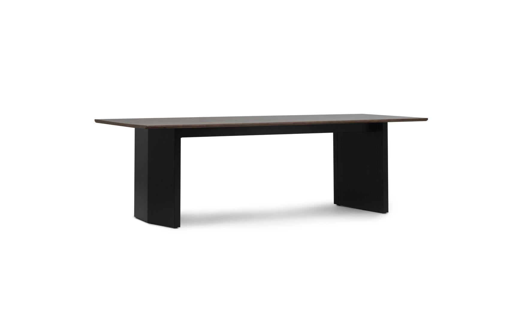Table The panel is a modern interpretation classic dining table, distinguished by an elegant and solid construction. Instead of traditional four legs in the corners, its design is based on three visual elements that create a dynamic and at the same time balanced form. The flat packed design not only facilitates transport, but also emphasizes the minimalist nature of the furniture. The balance between the materials gives it a timeless expression, and subtle details add lightness and sophistication.