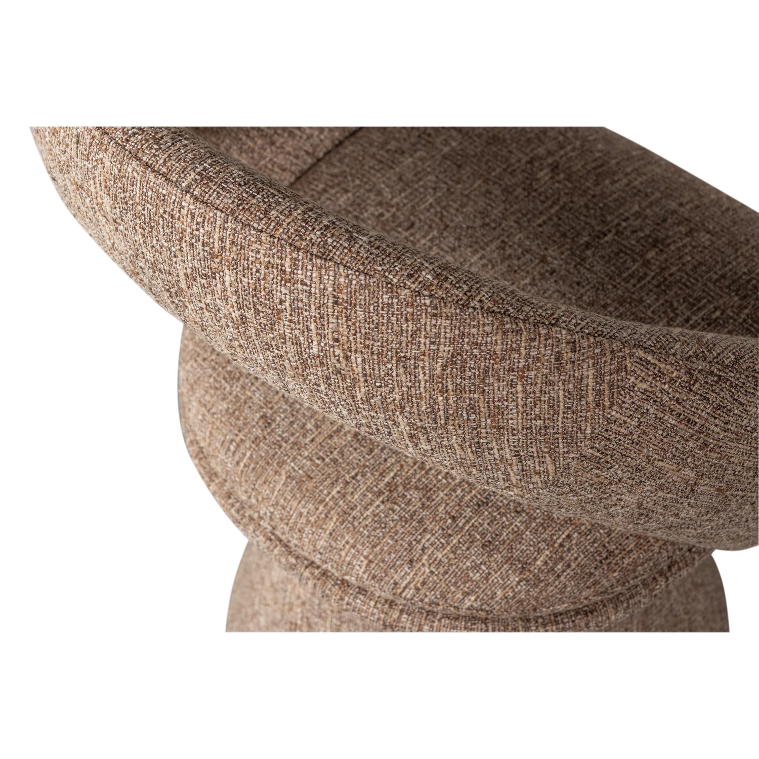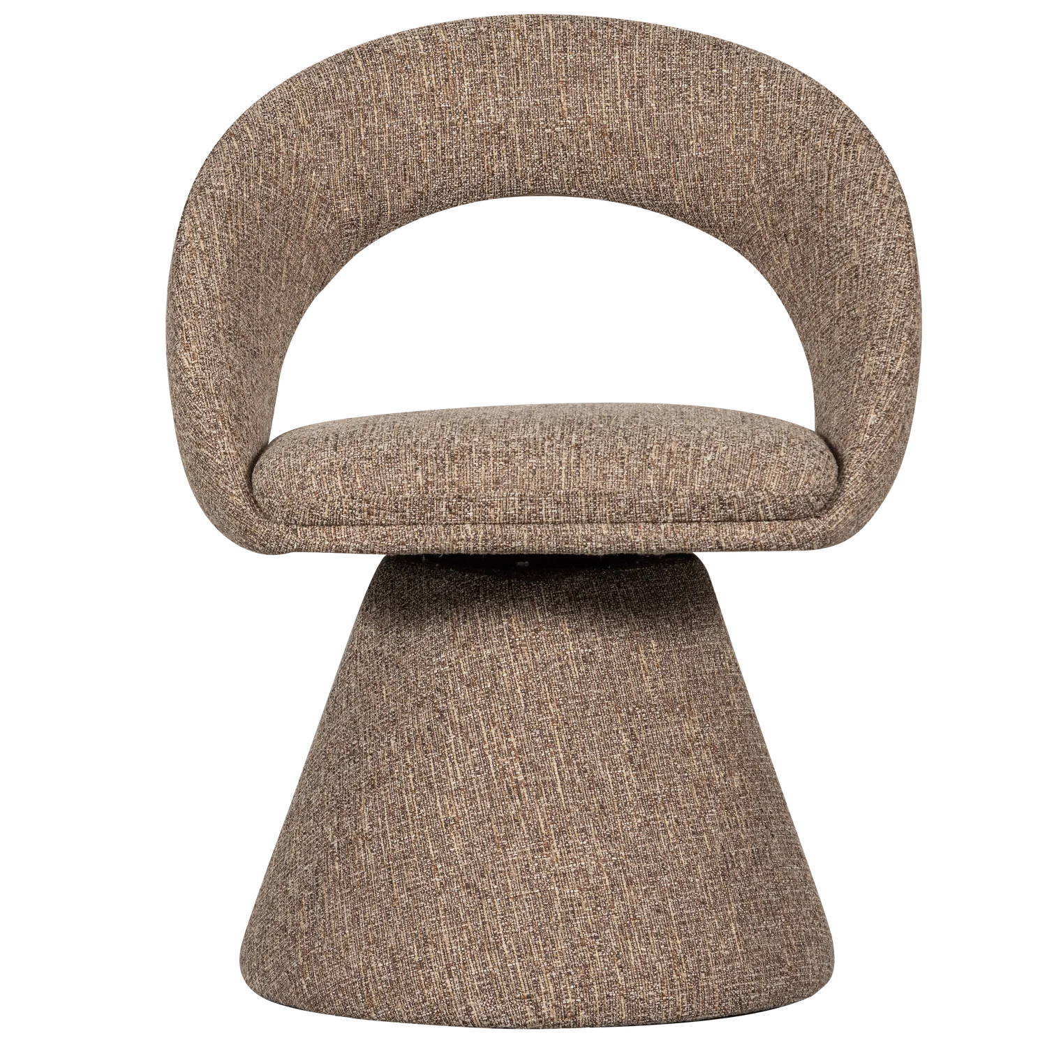 Dining chair Winter captivates with its modern, elegant appearance. Upholstered in a fabric with a distinctive weave, it combines comfort with a simple form. The swivel base, also fully covered in fabric of the same color, gives it a cohesive and stylish character.