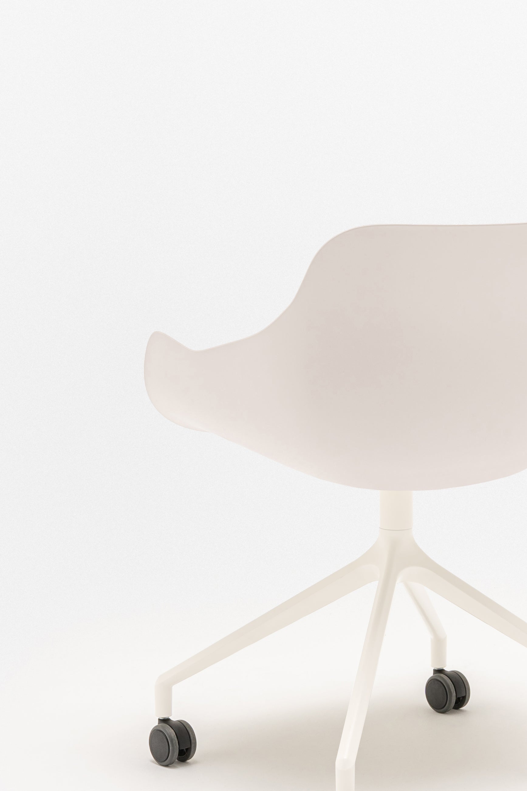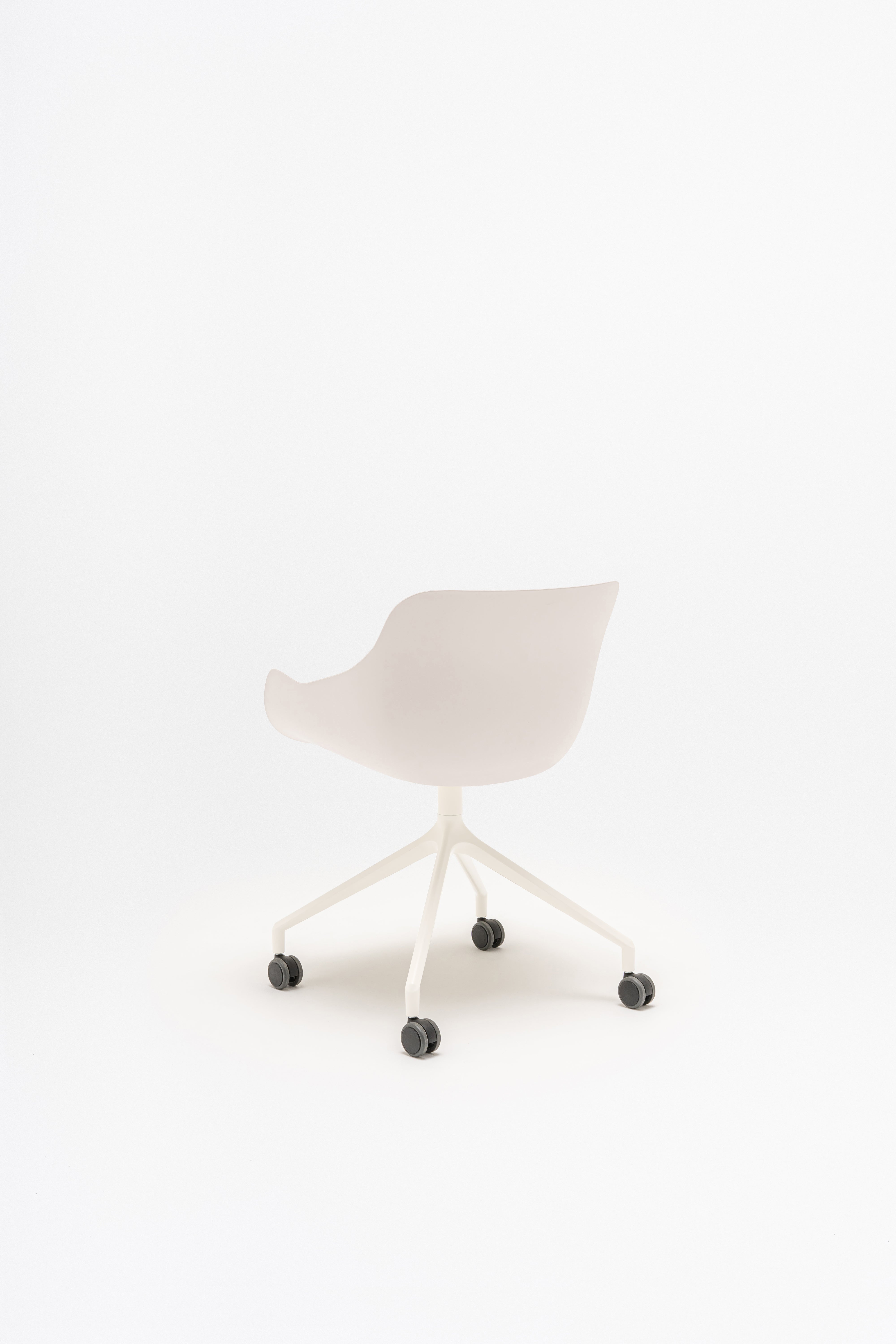 Office chair with a countertop Baltic Remix, designed by Krystian Kowalski, combines modern elegance with functionality. The bucket, colorful seat envelops the sitting, and the polished, aluminum base on wheels adds sophistication. The built -in top increases the comfort of work, enabling comfortable use of a laptop or taking notes. Thanks to this chair It works both in offices and educational spaces, ensuring productivity and convenience during prolonged use.