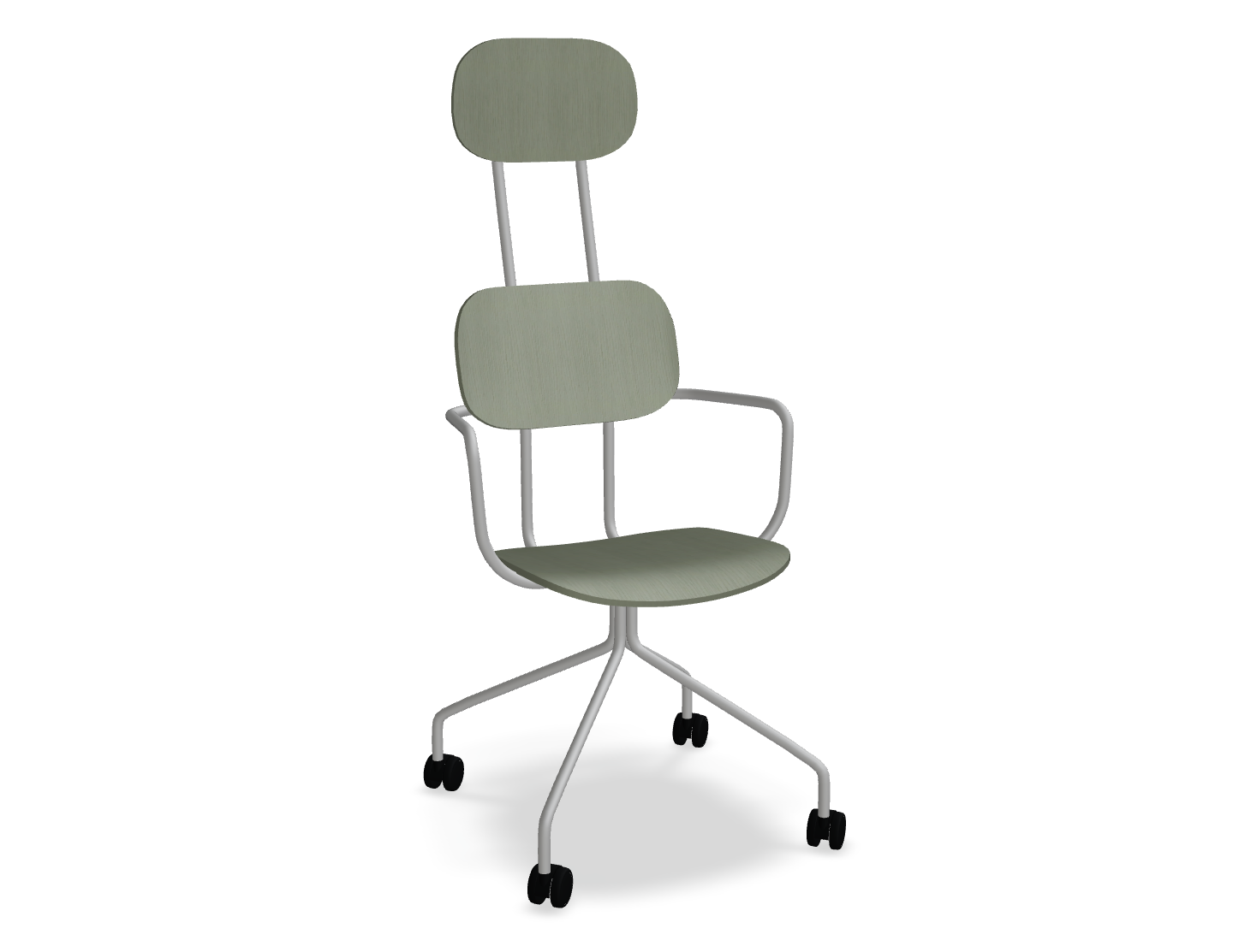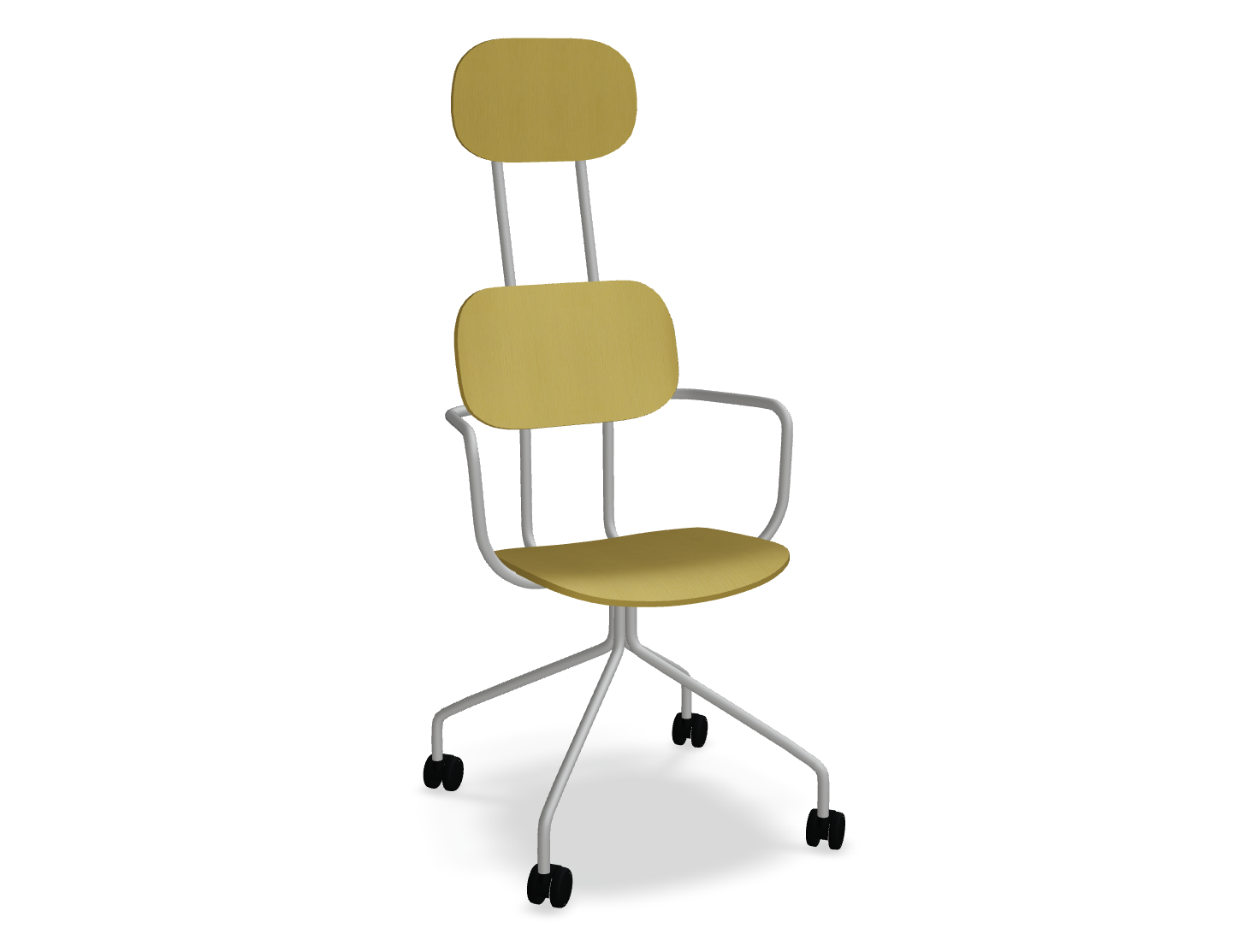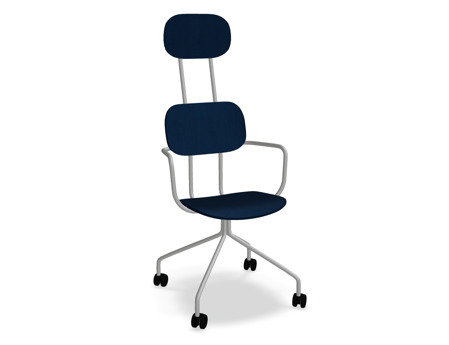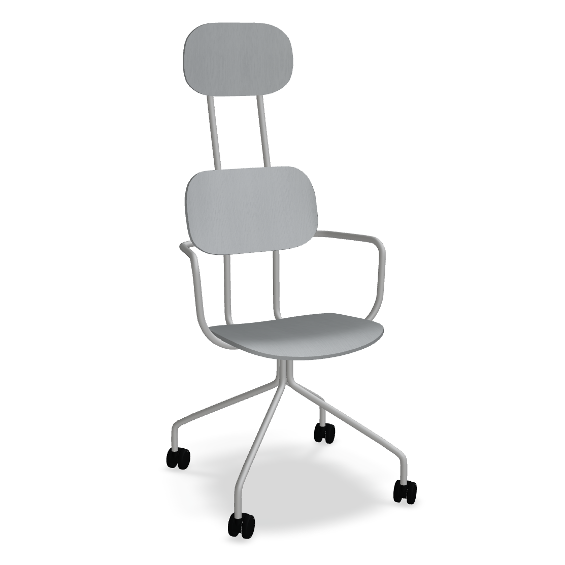 Office chair with headrest New School, designed by Studio Form US with Love, attracts attention with a modern form of double support. This version provides support for the whole back, and the headrest additionally increases the comfort of use. Thanks to the wheels and armrests, the New School chair is not only comfortable, but also functional, allowing for freedom of movement and a comfortable position, even during a longer sitting.