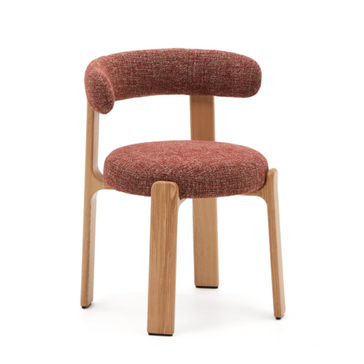 BOSCA chair in brick-colored chenille with a walnut veneer base