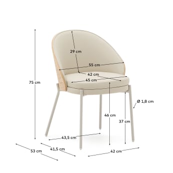The ash chair frame, also in beige color, ensures solidity of the structure, emphasizing its modern character. The seat is covered with synthetic leather in a beige shade, which not only increases its aesthetic charm, but also guarantees comfort of use. The Eama chair is more than a piece of furniture, it is a thoughtful combination of functionality, comfort and elegant design, dedicated to those who value uniqueness and modernity.