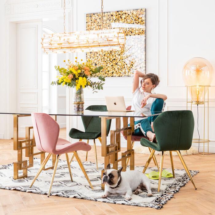 Give your dining room a fashionable restaurant! Chair Viva is the perfect combination of modern shape and stylish colors. It is not only very comfortable, but also elegant. The chair is up to date with trends: soft velvet meets here with modern, profiled legs.