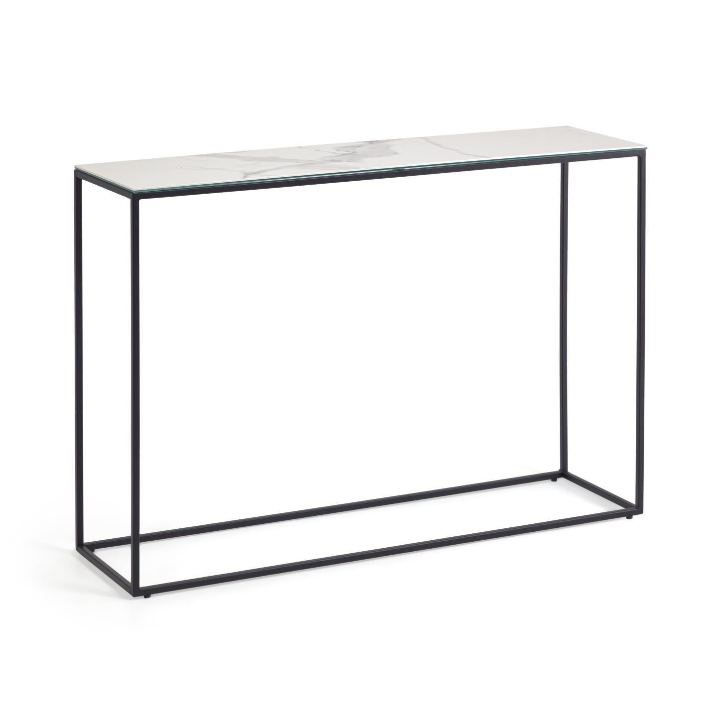 Ceramic countertop white console REWENA is a symbol of a sophisticated taste and aesthetics. The choice of this exclusive material adds a unique character to the room, creating a durable and easy to maintain surface. Solid structural steel is not only the basis, but also a subtle contrast, creating a balance between modernity and solidity.