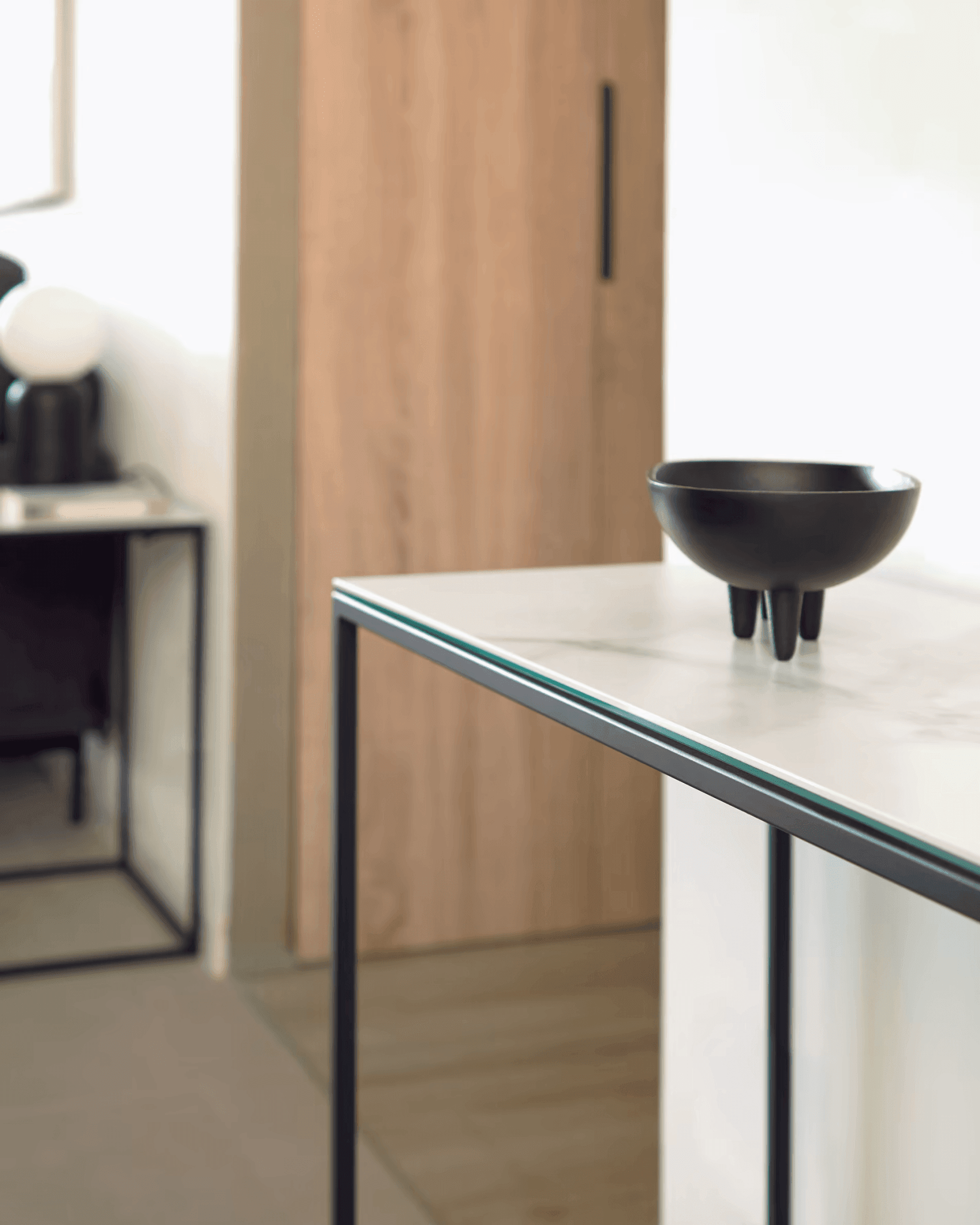 Console REWENA is an expression of an innovative design created by our team, combining elegance ceramic A countertop with solidity of steel structure. It is not only a piece of furniture, it is a unique composition of form and function that not only reflects the latest trends in design, but also emphasizes environmental friendliness.