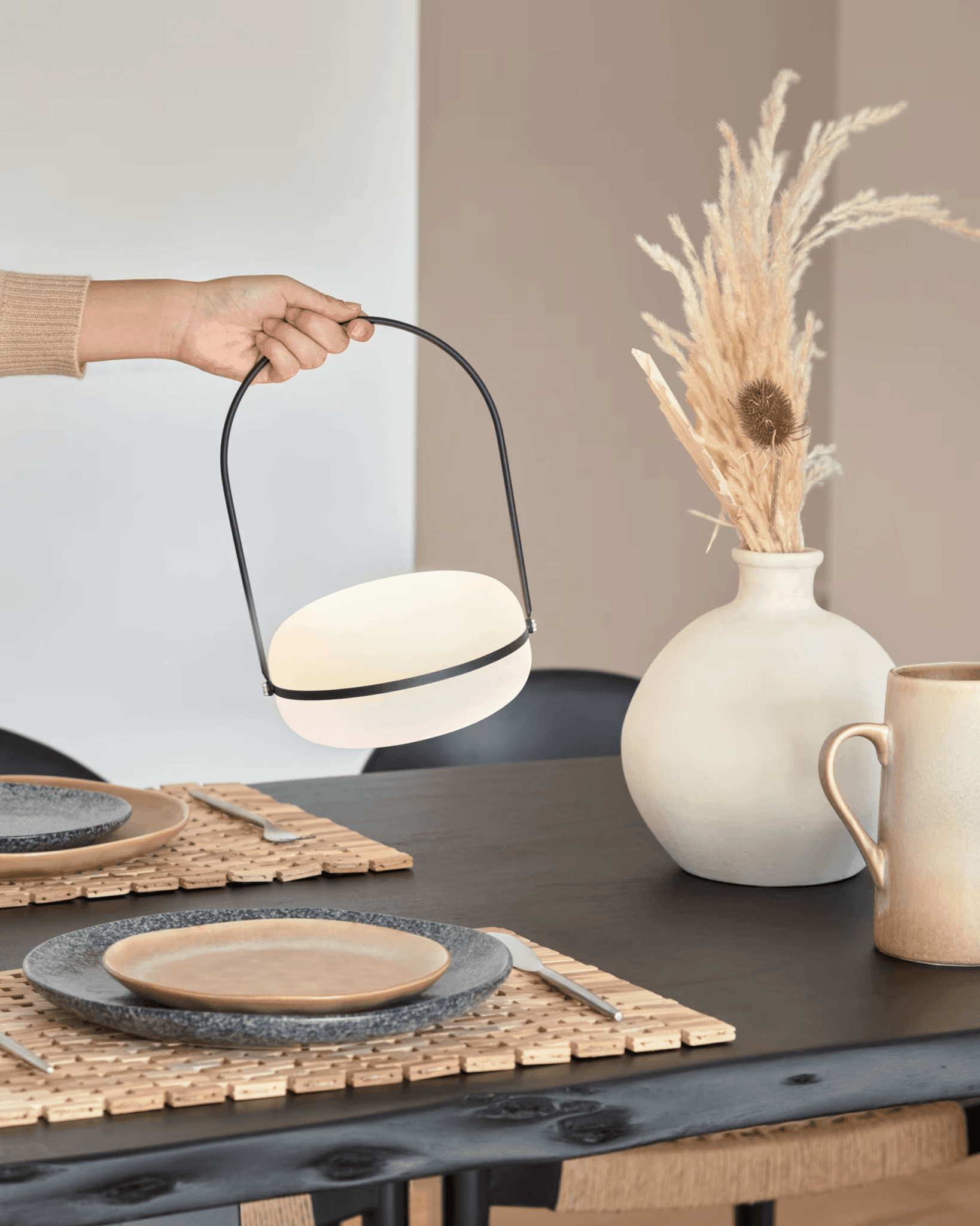 Battery lamp Tea In black it is a practical and stylish solution for those who want to have available light everywhere where they take their steps. Thanks to the battery power, this portable lamp It can be used without connecting to an electrical outlet, which makes it an ideal companion both inside and outside the rooms.