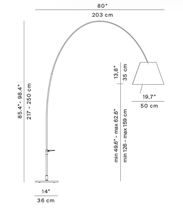 Floor lamp Lady Costanza from Luceplan is an elegant and functional lighting solution that combines a light construction with maximum flexibility. Thanks to the telescopic leg, the lamp height can be adjusted, and the ability to rotate the base by 360 ° allows you to precisely adjust the light direction. The built -in dimmer further enables lighting control, creating an ideal atmosphere to read, work or relax.