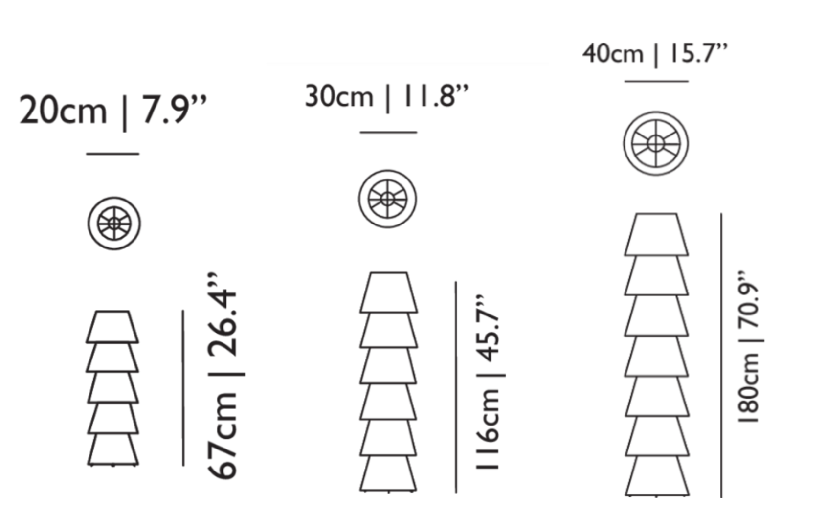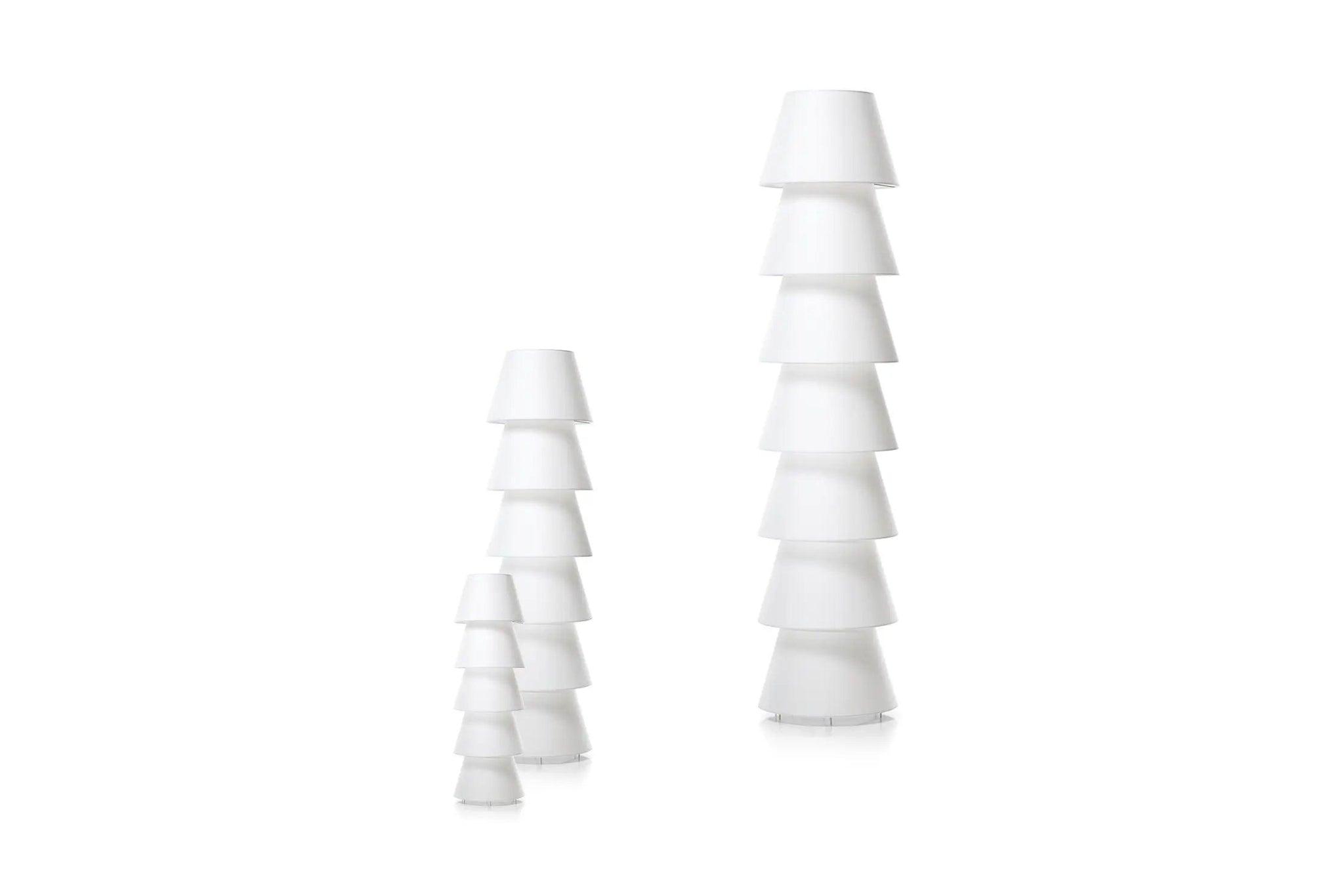 Floor lamp Set up Shades is a tribute to the archetypal form of a conical lampshade, which most people associate with a lamp. Marcel Wanders, through the set Up Shades, explores the boundaries of the text form. This set is available in three models.